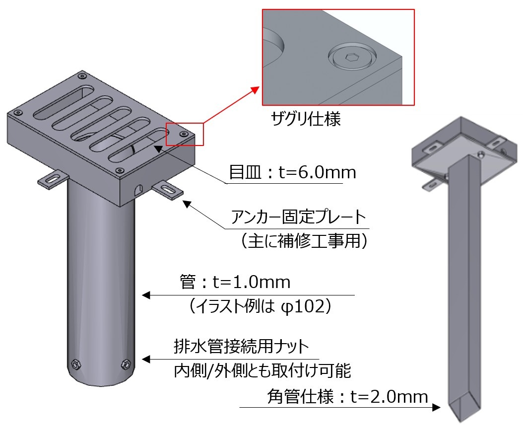 橋梁用TSステンレス排水桝の仕様