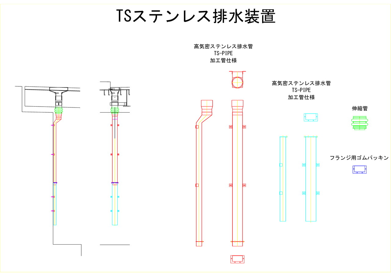 橋梁用TSステンレス排水装置のトーカイスパイラルです。1基、1本から提案・作図・製作を行っております。