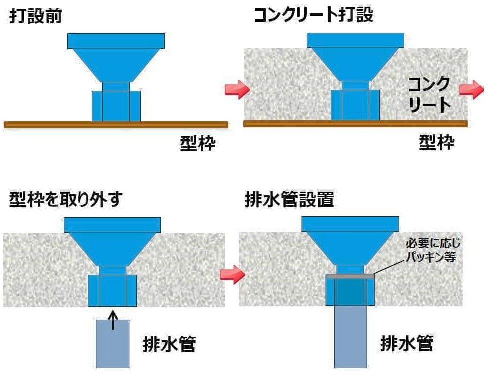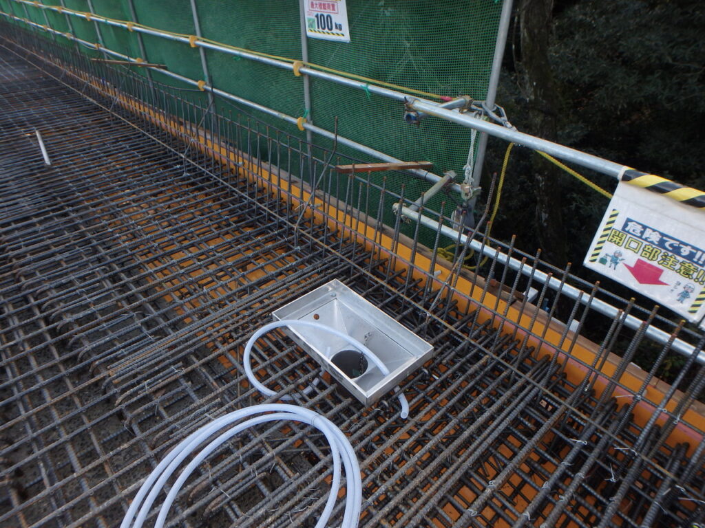 二重構造とすることで型枠にパイプを通すための孔が不要となる、型枠の再利用が可能になるといったメリットがあります