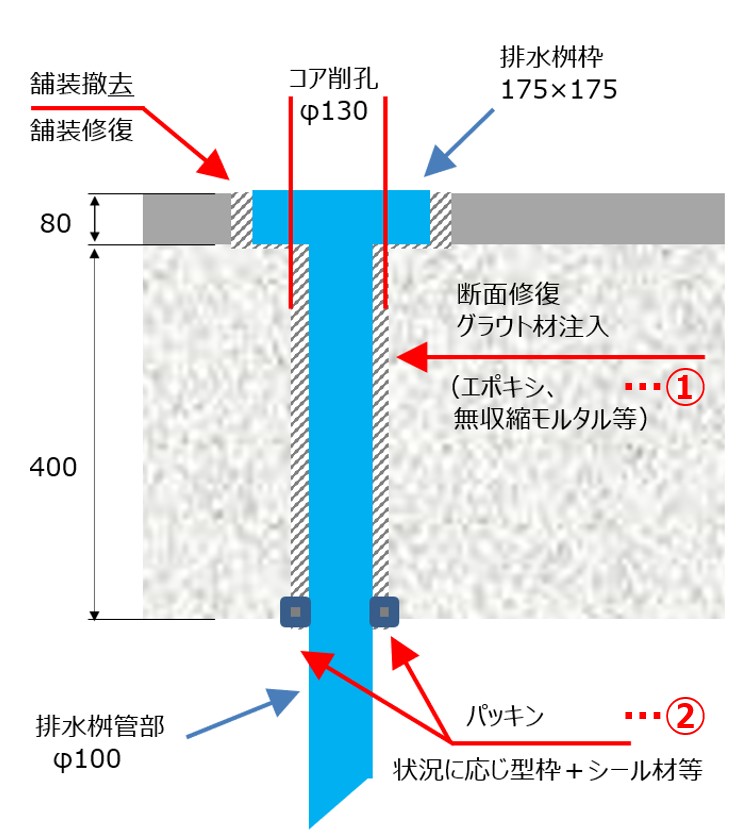 ①‐H3-1. 排水桝とコンクリートの付着力向上対策