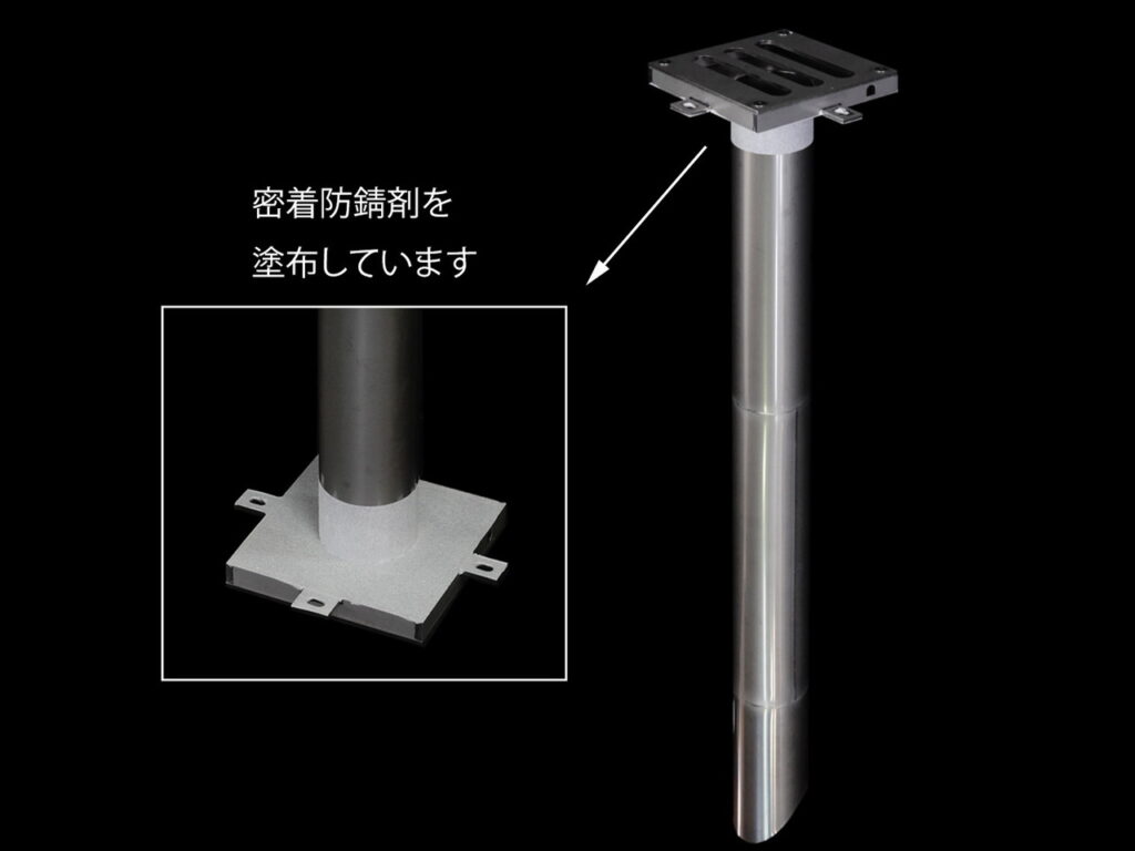 ’TSステンレス排水桝’と’コンクリート’との界面の密着向上が可能となる「鋼・コンクリート密着防錆材」を使用し、排水桝とコンクリート床版の境界部の剥離を防止軽減し浸水、漏水の発生を抑えることが可能です。