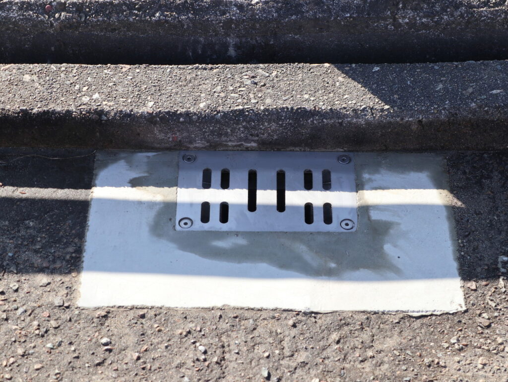 橋梁補修工事にて排水桝を交換、新規で設置の際は床版/鉄筋を傷めないよう床版コンクリートを斫らないため、底面をフラットとしロート無しの仕様が殆どです。そのため、土砂等が堆積しやすくなり詰まりやすくなります。また桝内に引き込まれた床版防水層上の排水を行うスパイラルドレーン(導水管)がパイプを塞ぐこともあります。ナオシマスはこれらの弱点を補う機能をもった排水桝です。目皿仕様ながら輪荷重(T-25)に配慮した製品もラインナップに加え、より広範囲でのご提案が可能です。
