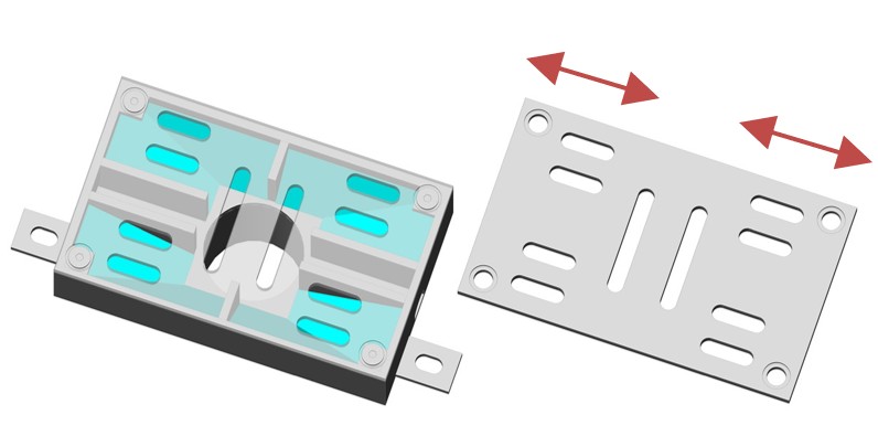 設置時に使用するアンカー用プレート3箇所のうち、1箇所が鉄筋回避用に可動調整可能です。