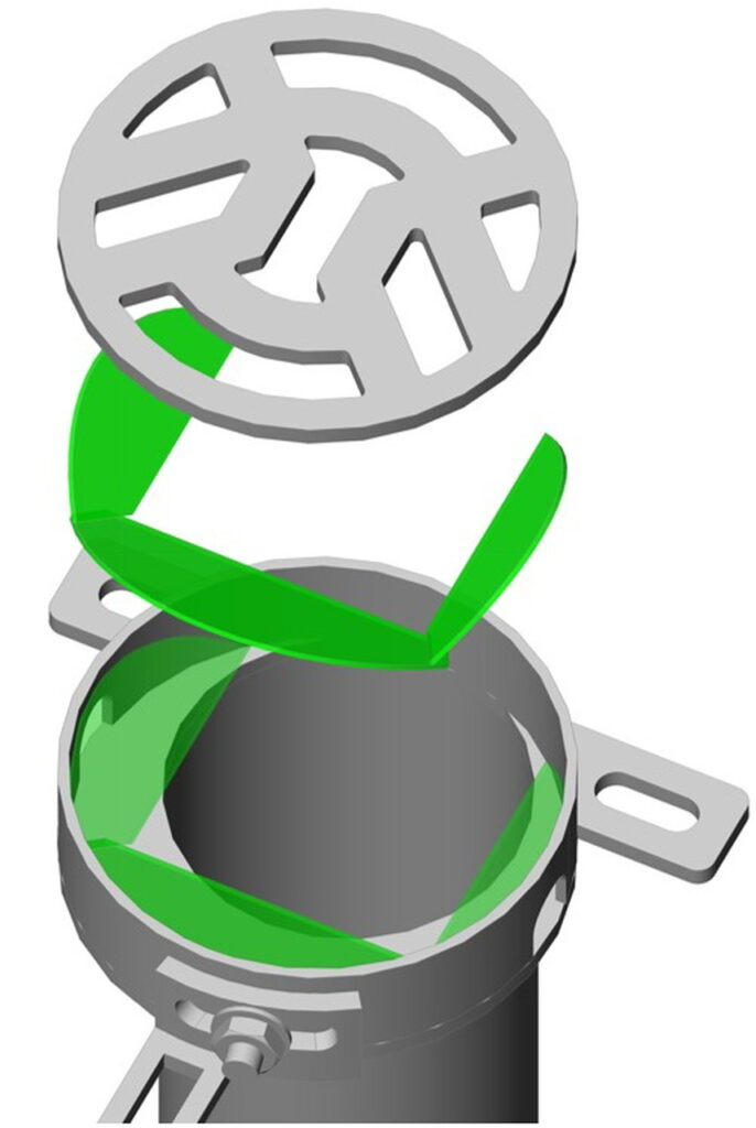 形状の工夫によりロートプレート有り、導水管がパイプ内を塞がない仕様はそのままです。 この RCF-SL は RCF-Sより制約が少なく、目皿孔形状やサイズ等の製作自由度が高い、低コストといったメリットがあります。