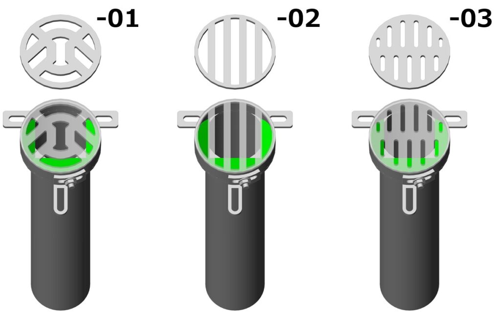 | ◎ ・リブ付きで高強度。(一部輪荷重対応) ・ロート付きで土砂等堆積の軽減。 ・導水管がパイプ内を覆わない。(施工時にカットが必要) ・目皿はボルトで着脱可能。 | ◎ ・ロート付きで土砂等堆積の軽減。 ・導水管がパイプ内を覆わない。 ・目皿開口からの清掃が容易い。 ・目皿はボルトで着脱可能。 | ◎ ・桝枠サイズ等、製作の自由度が高い。 ・集水面積が大きい。 ・目皿はボルトで着脱可能。 | ◎ ・ロート付きで土砂等堆積の軽減。 ・導水管がパイプ内を覆わない。 ・目皿開口からの清掃が容易い。 | ◎ ・この中では最も安価。 ・開口部からの清掃は容易い。 |