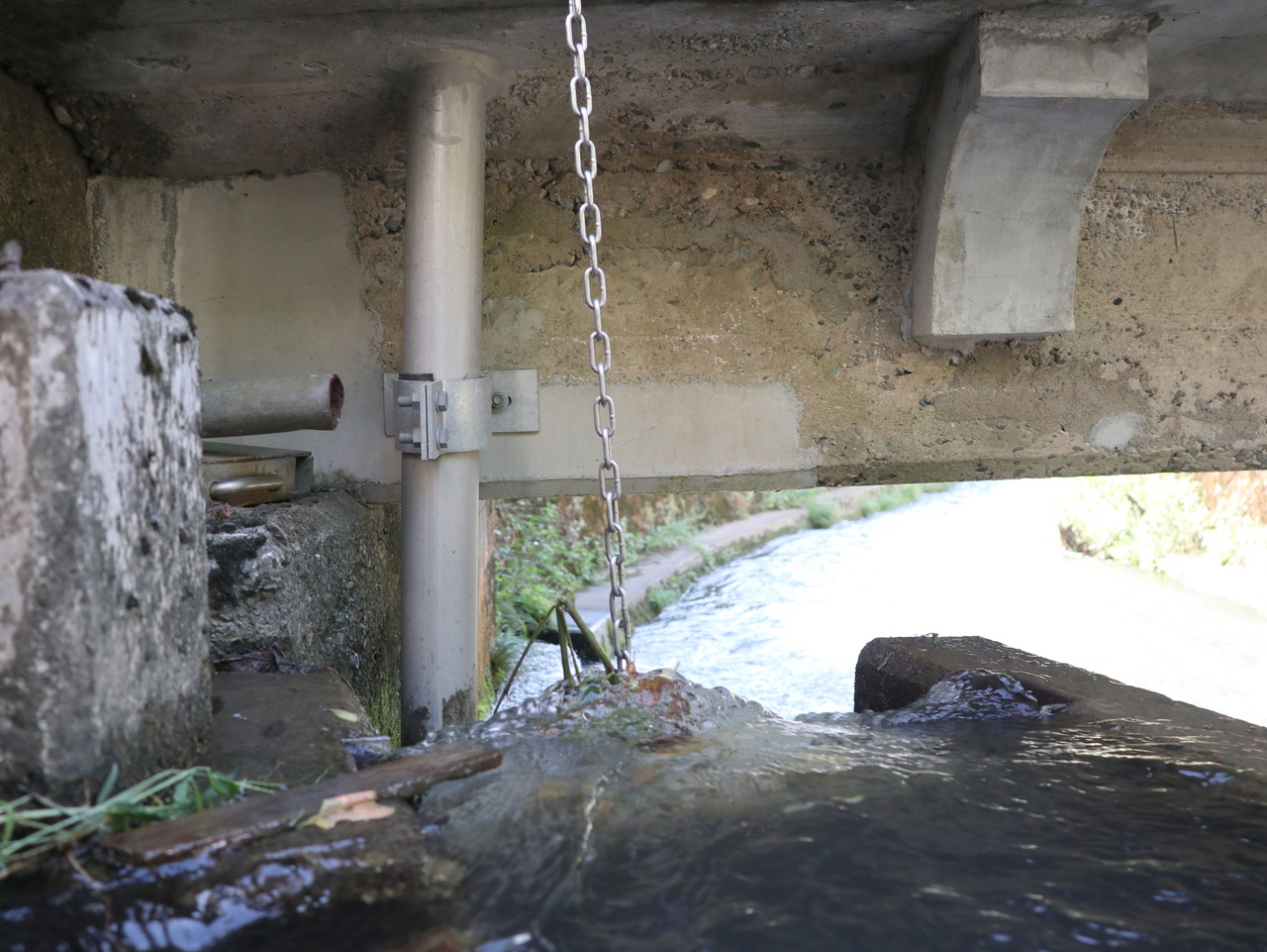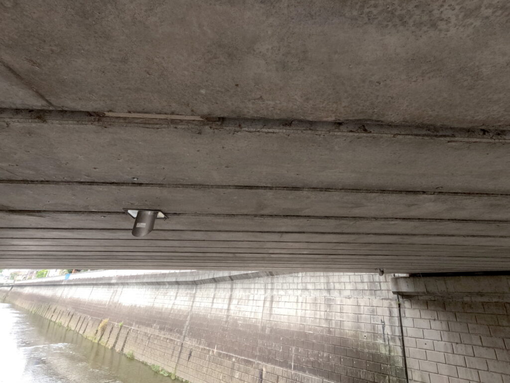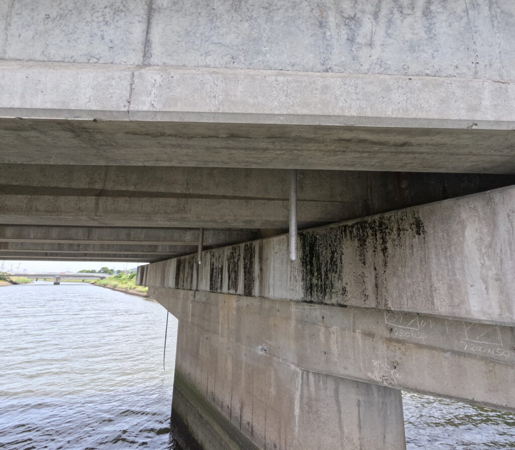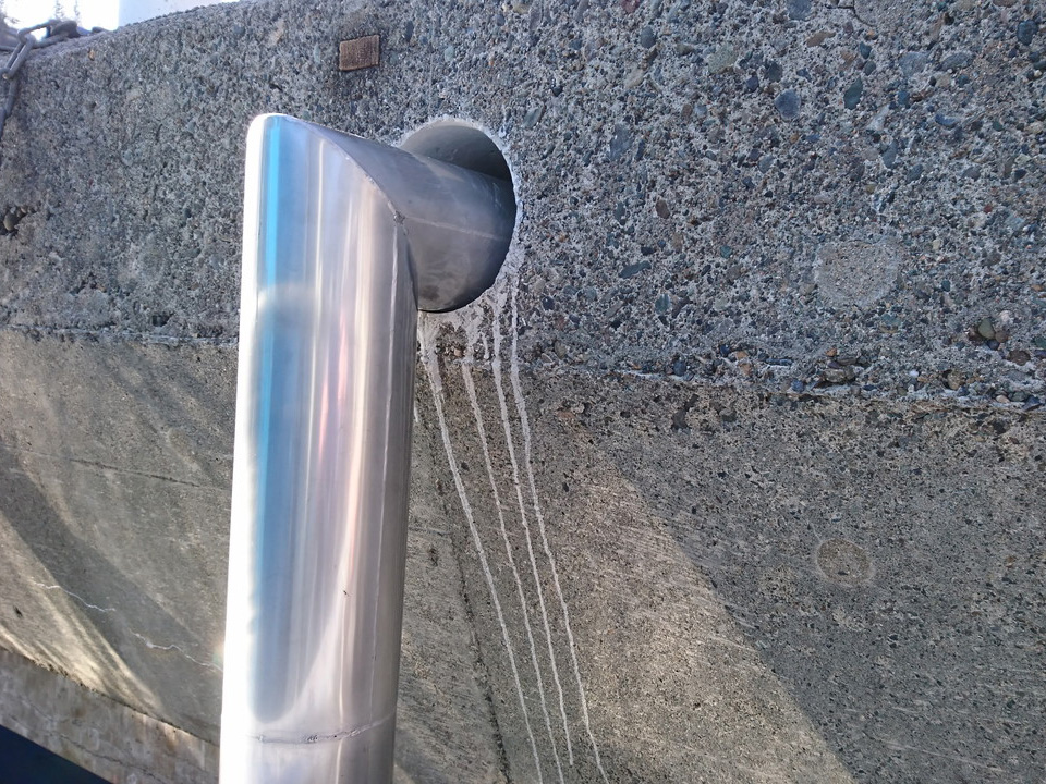 ①-B5-8. 地覆横引(貫通)管から横引添架排水管 写真