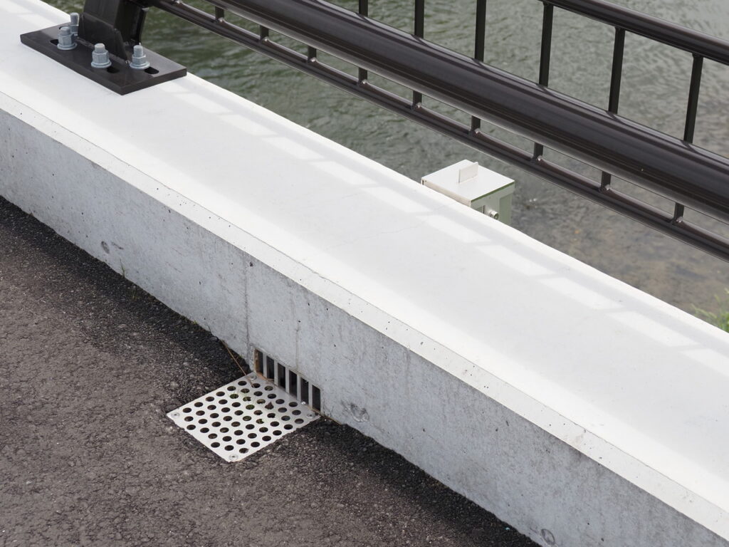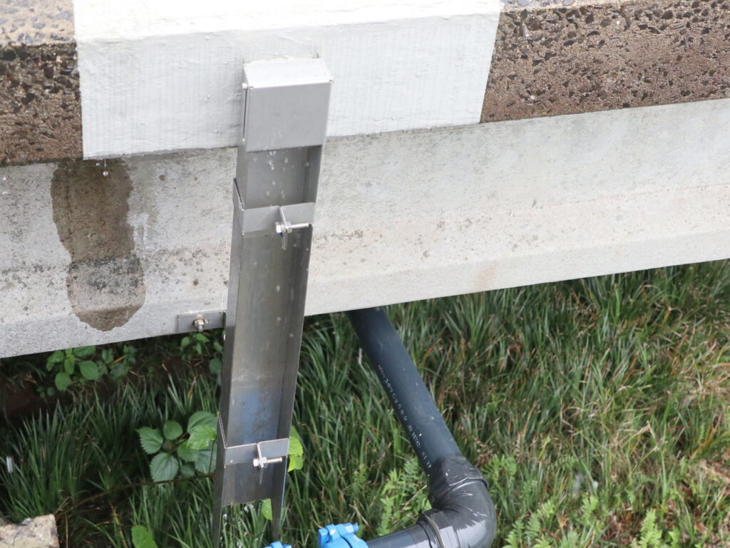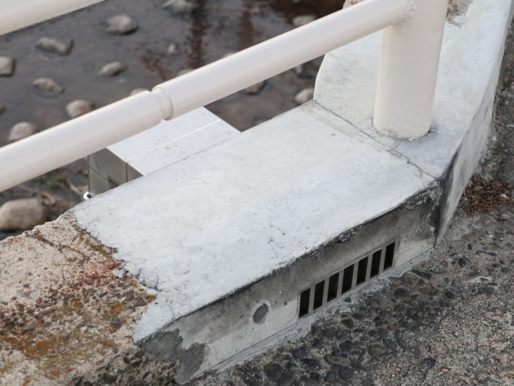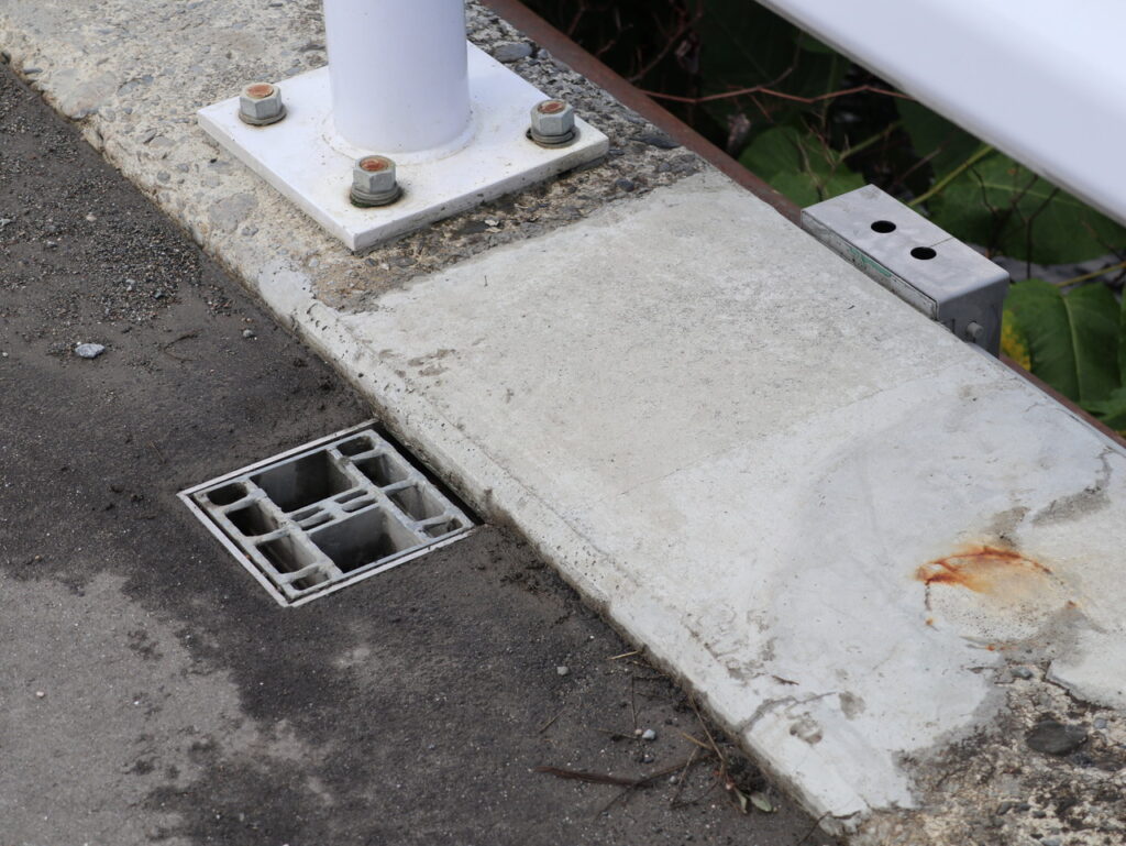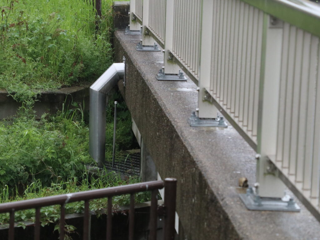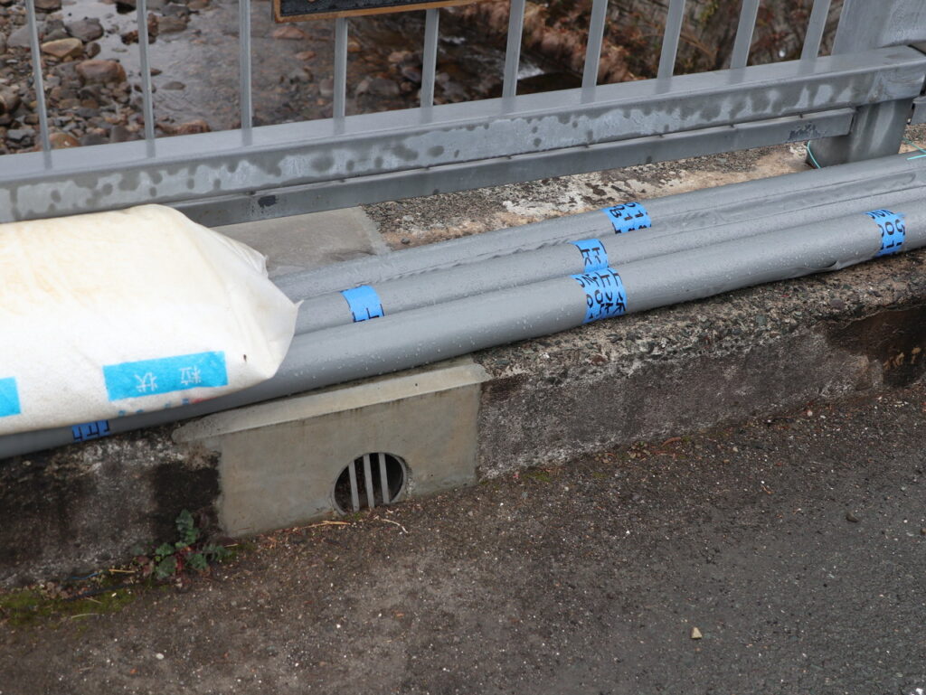 地覆横引管を地覆の高さと合わせ製作設置した例