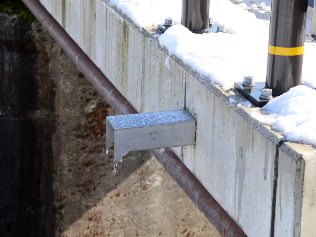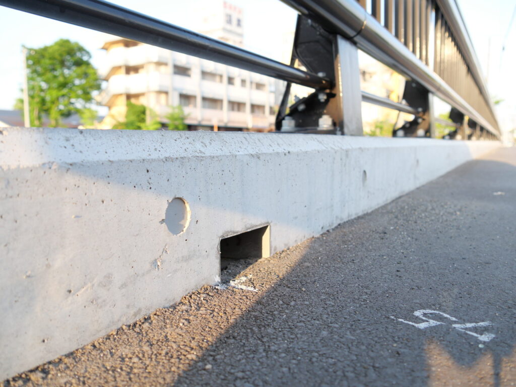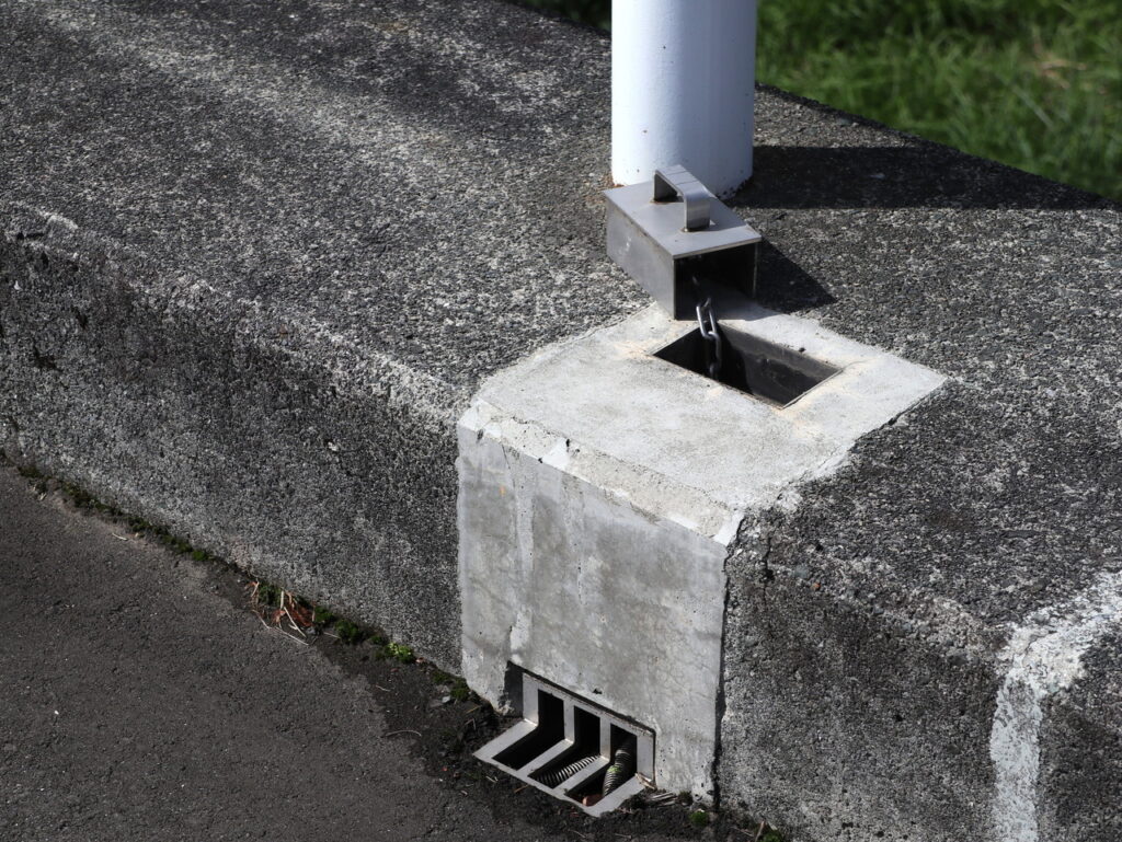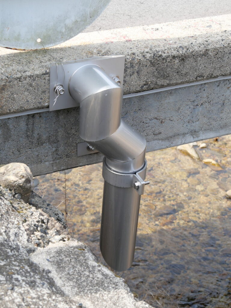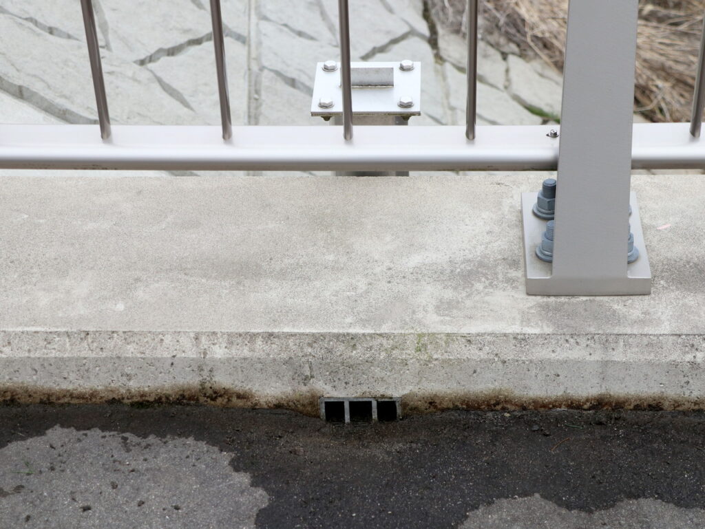 地覆横引管を地覆の高さと合わせ製作設置した例
