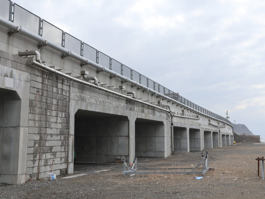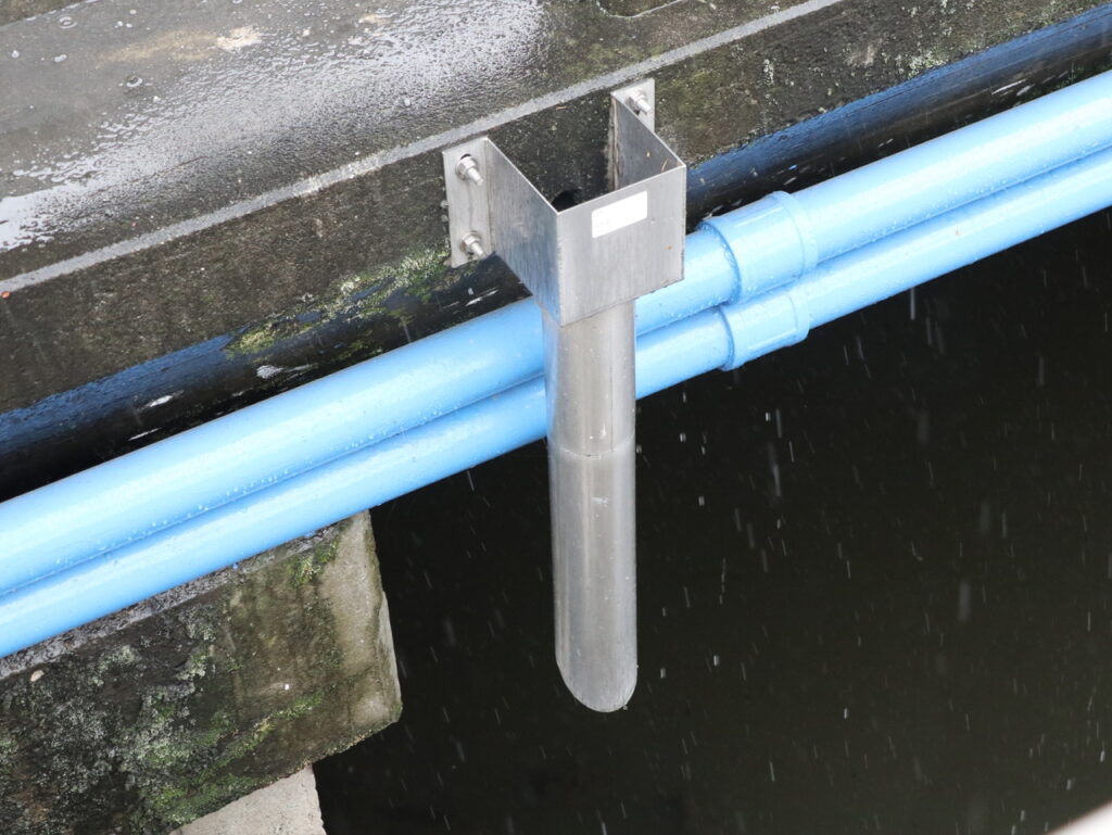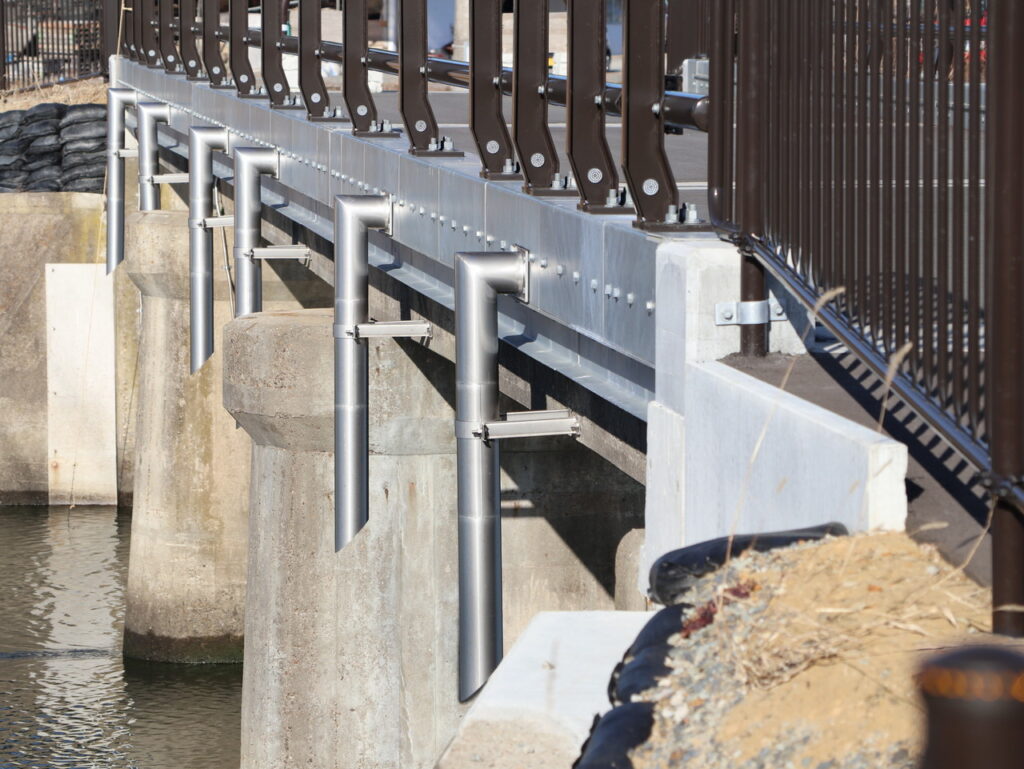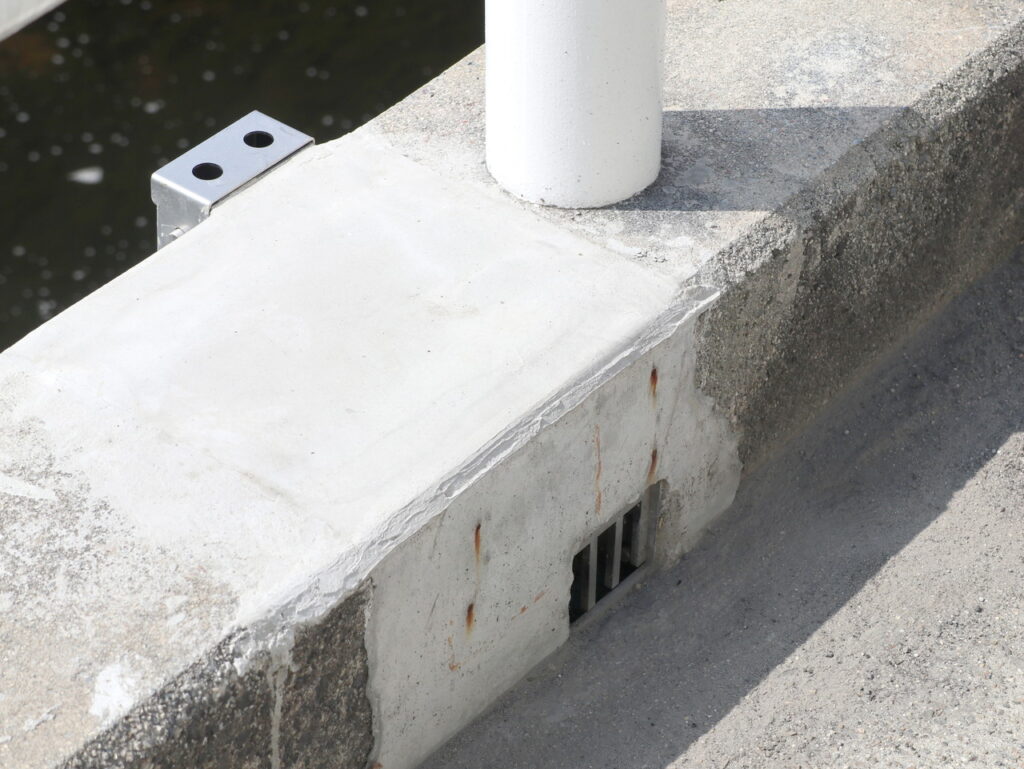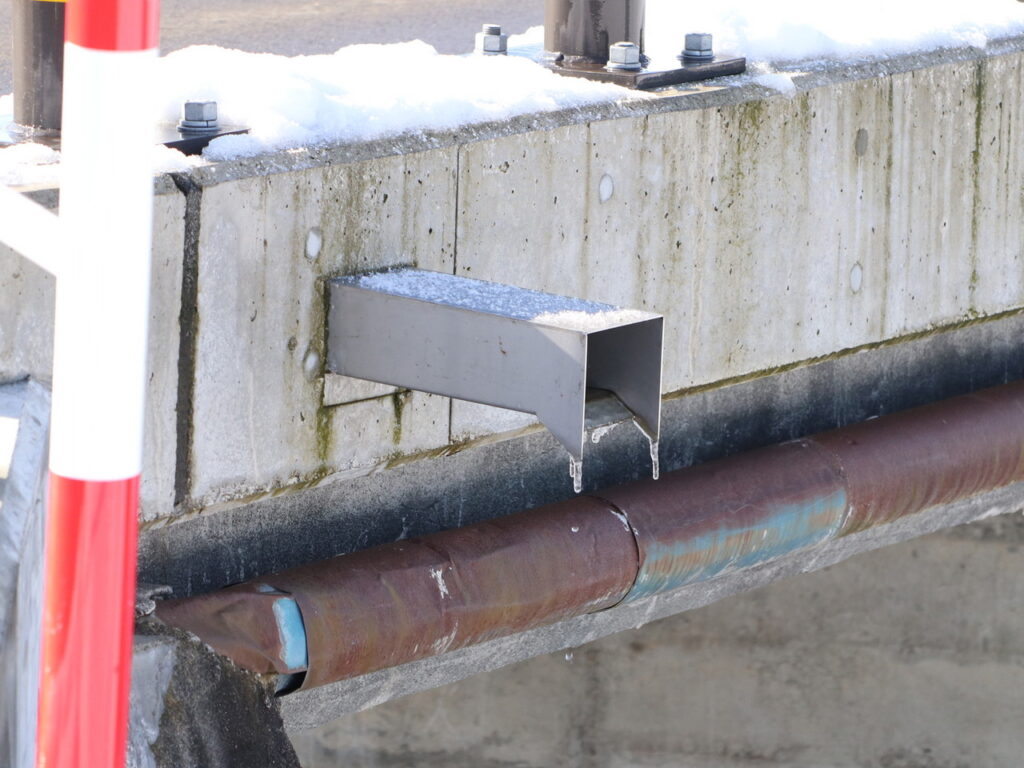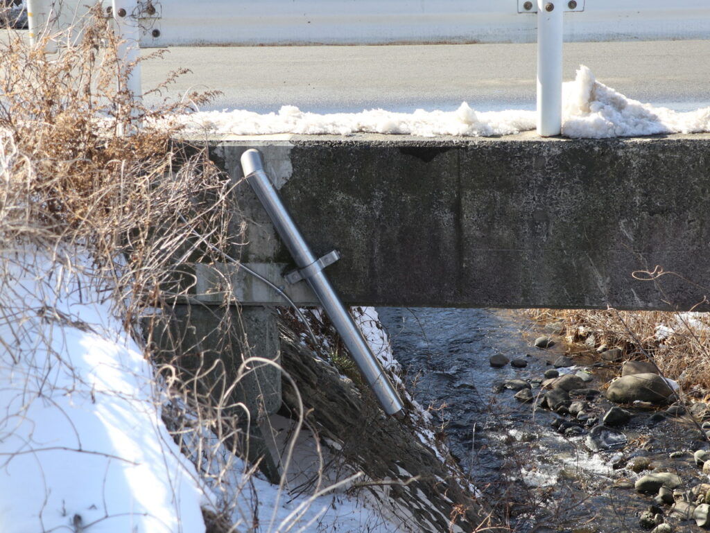 地覆横引管を地覆の高さと合わせ製作設置した例