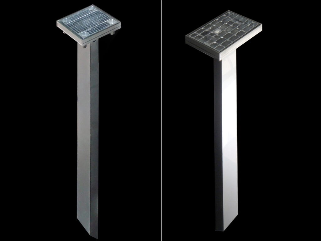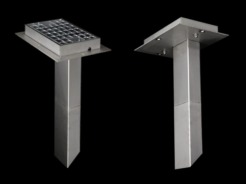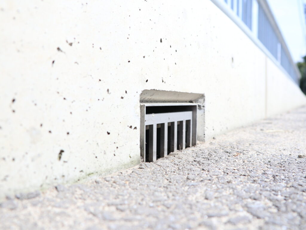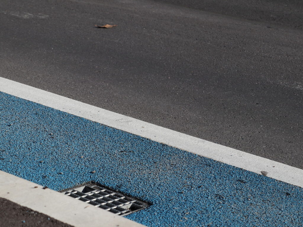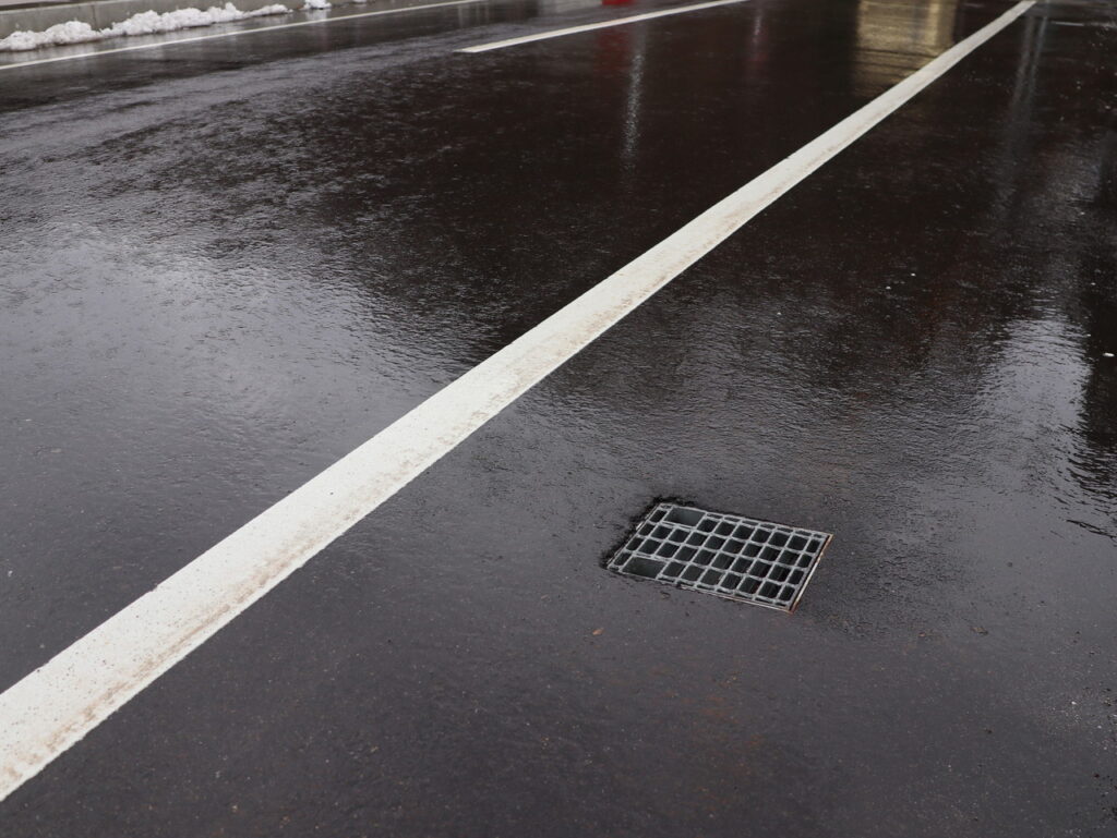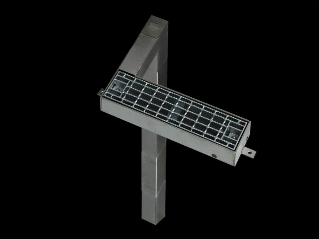 舗装天端からの集水可能な幅広目皿仕様、工具不要で開閉でき清掃がしやすい / 鉛直部の掃除蓋も工具不要で開閉可能です。