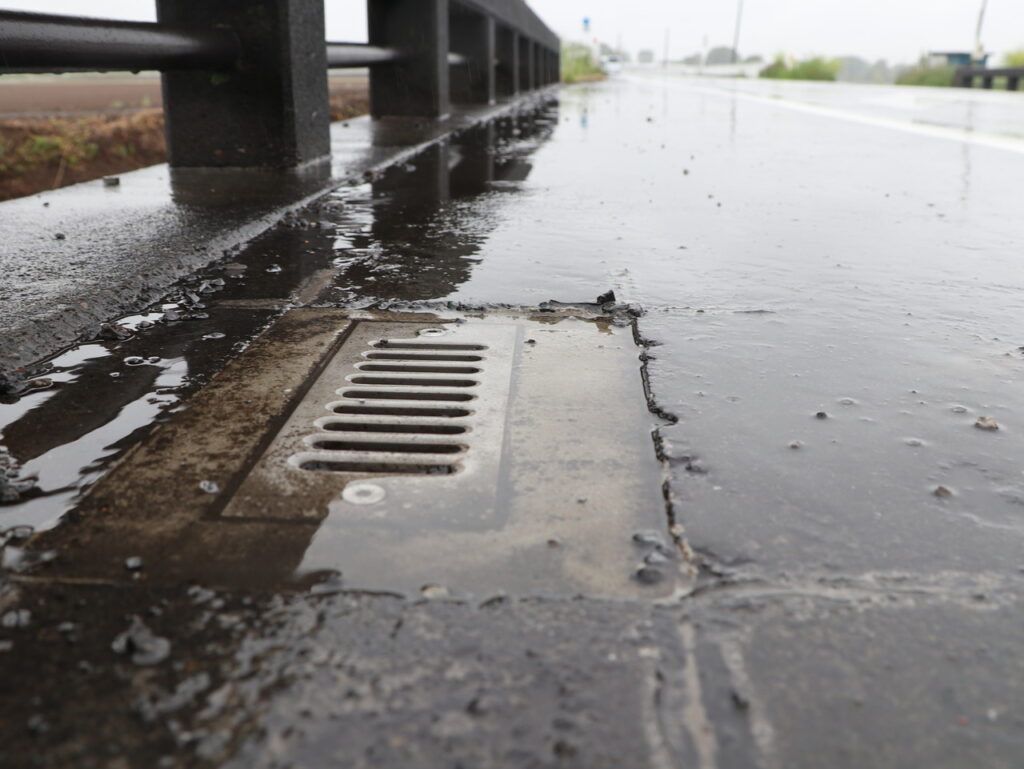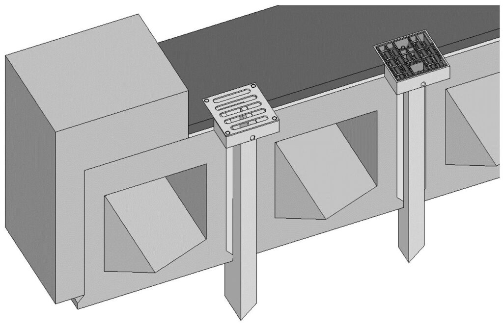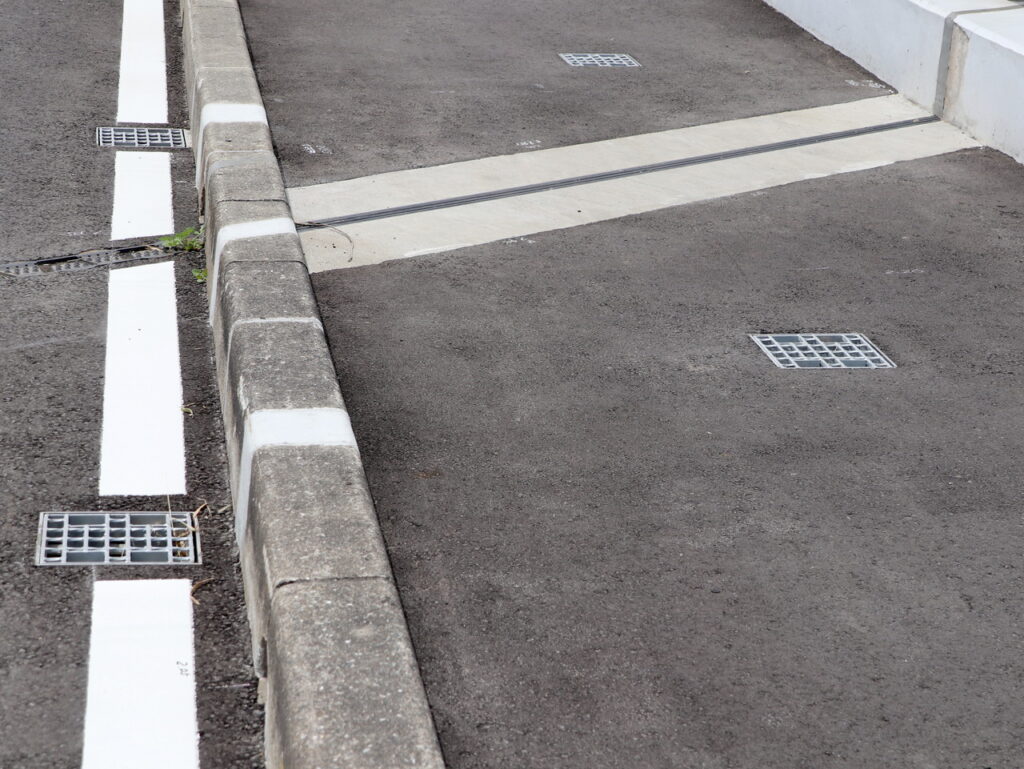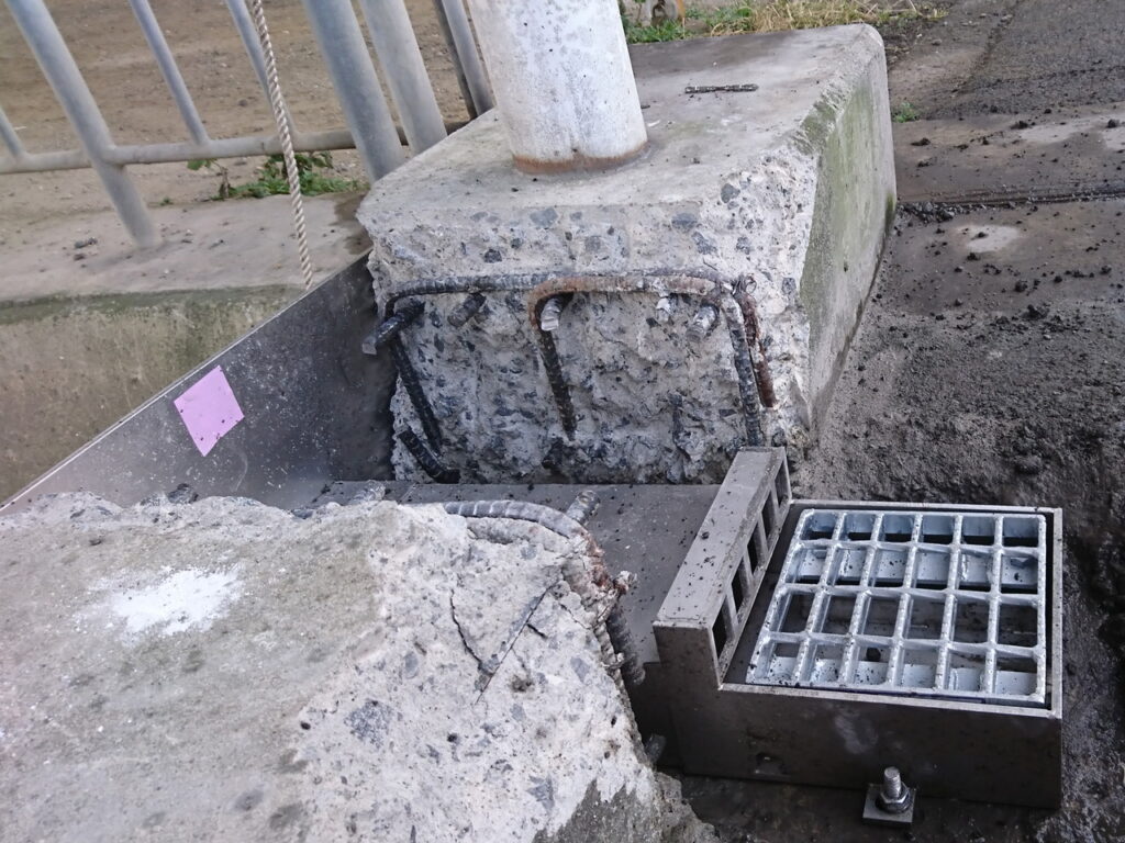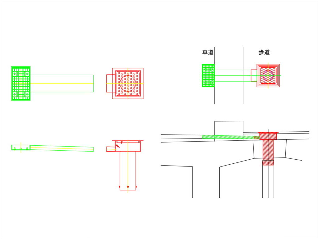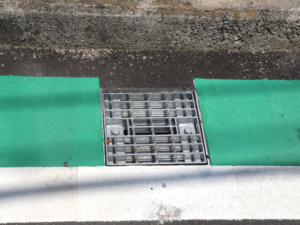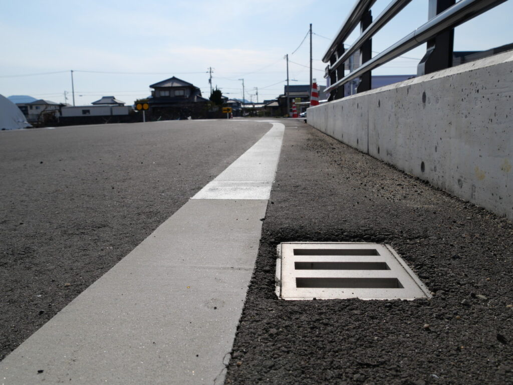 地覆横引(貫通)管一体の平面のグレーチングのある現場