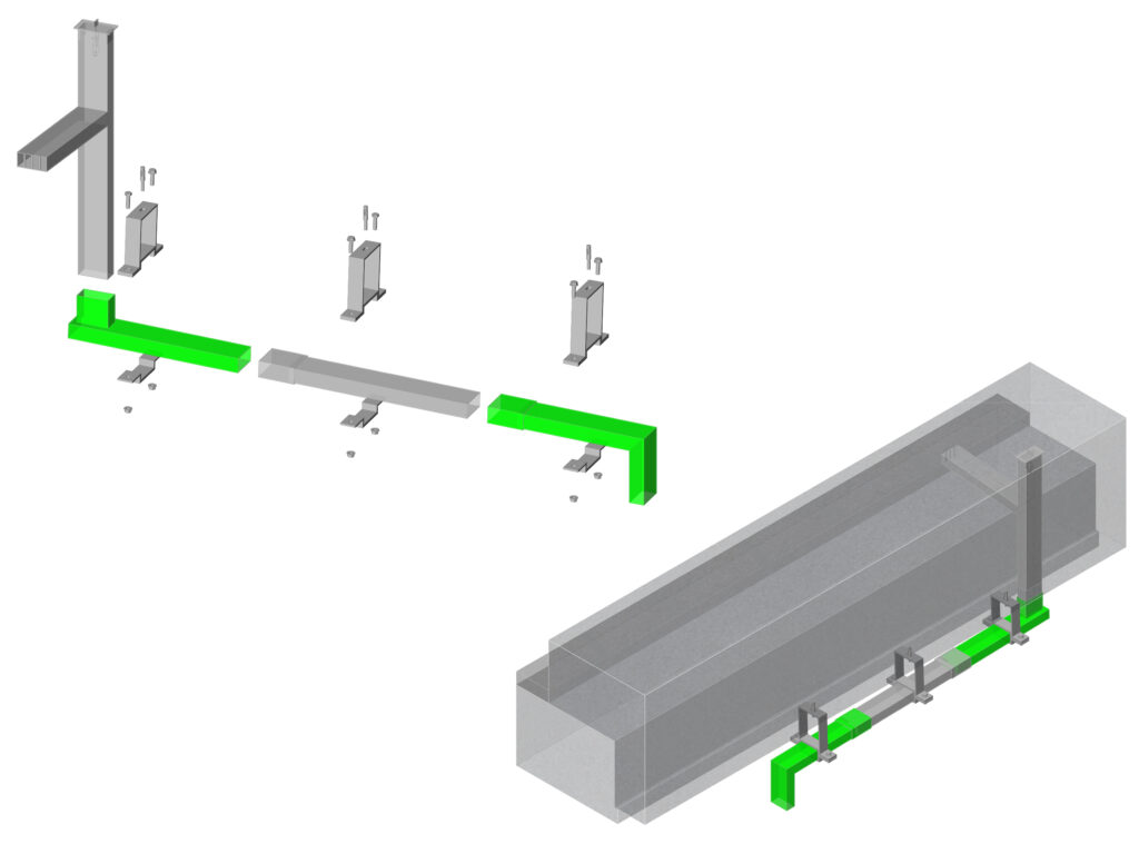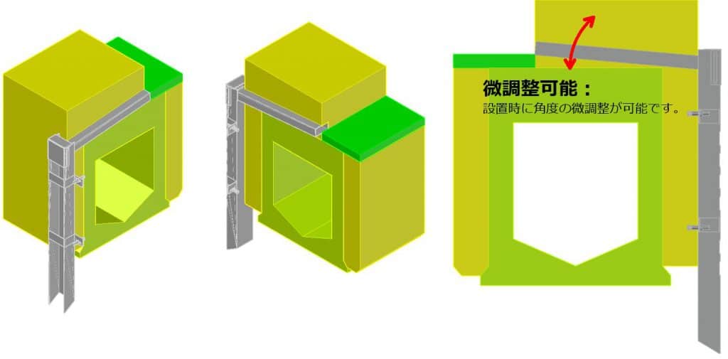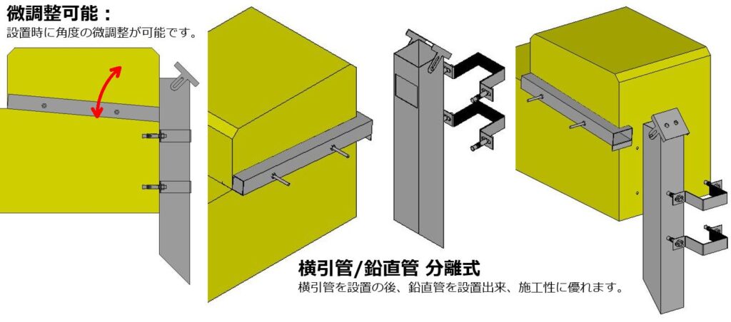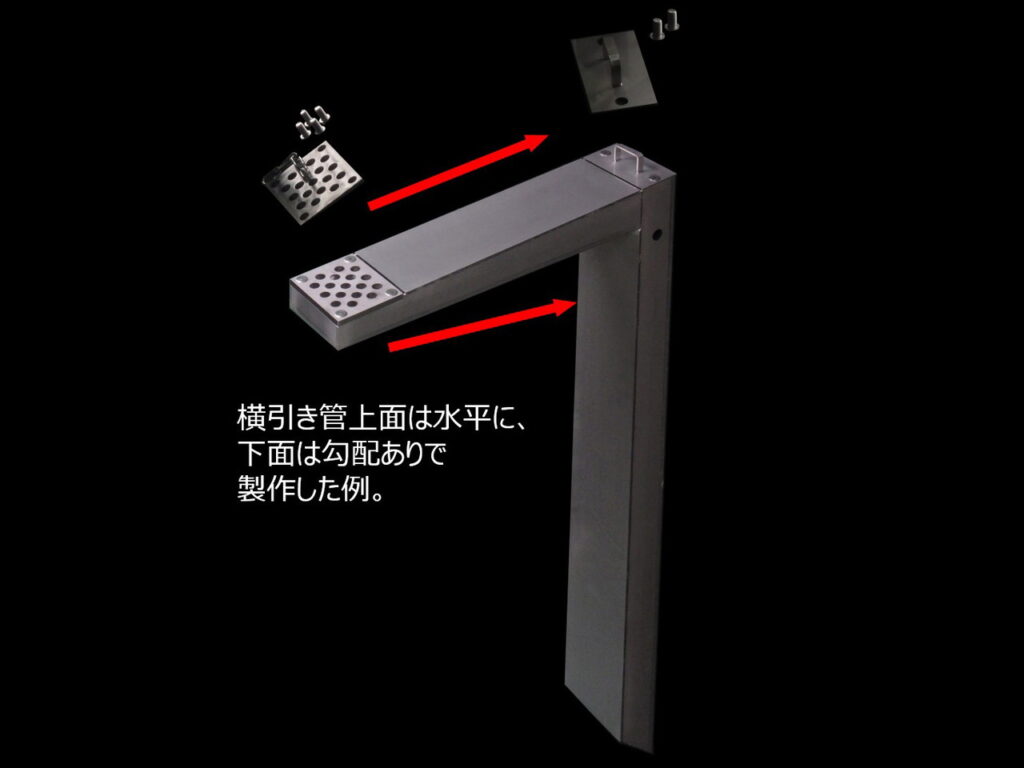 横引管、鉛直管が分離式の為、横引管の角度調整が可能です。各種仕様変更も可能です。