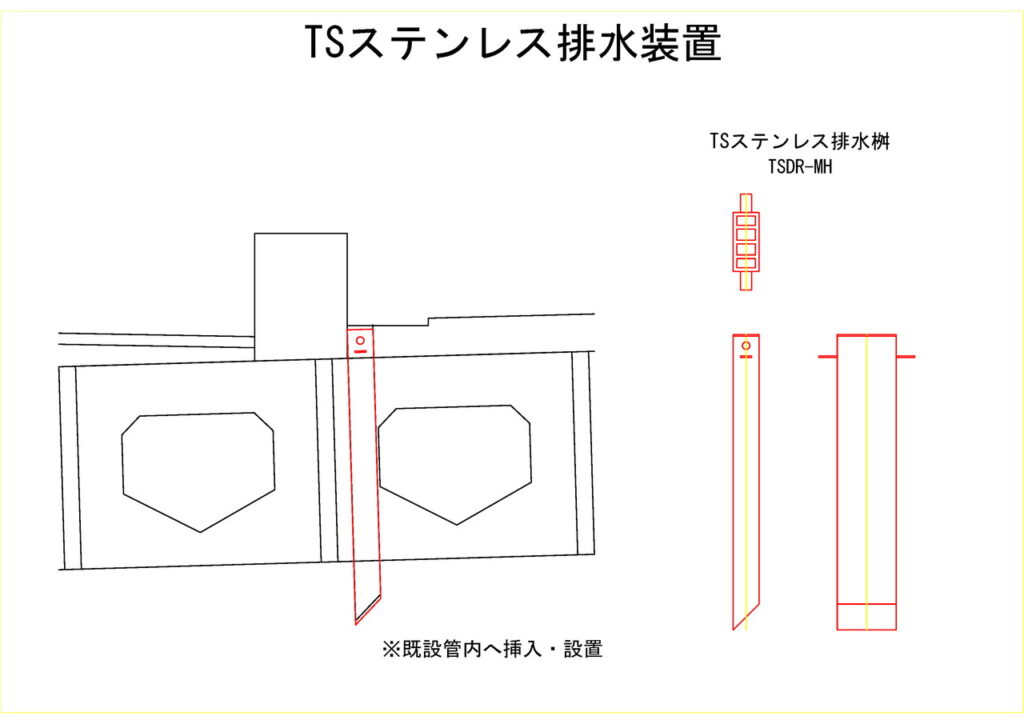 プレテンホロー等のスラブ橋桁 間詰部関連で使用頂いた排水装置の事例