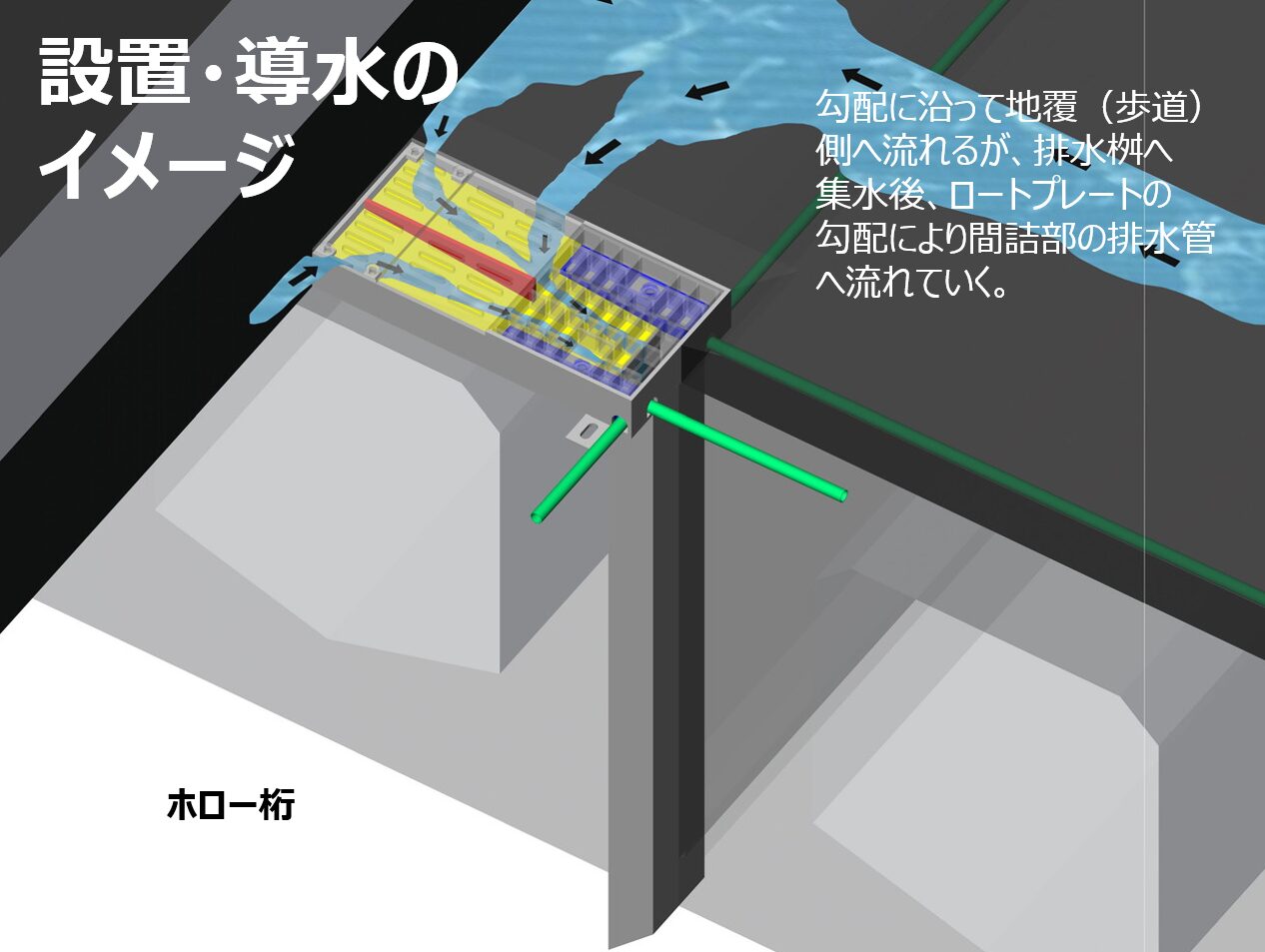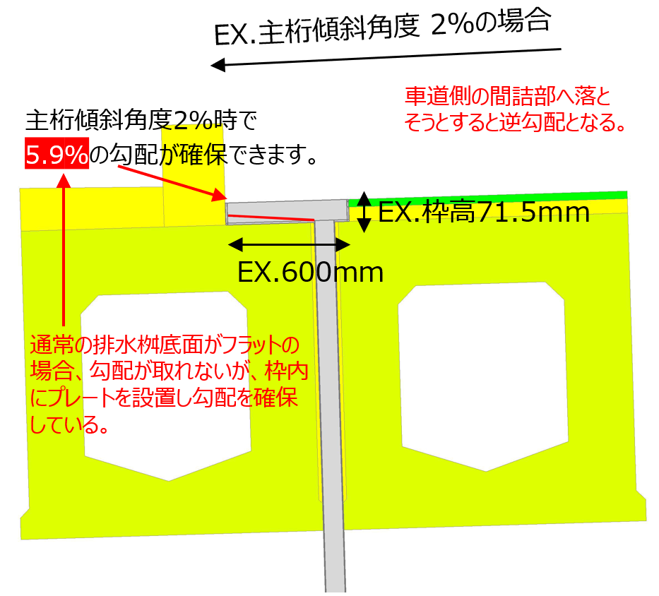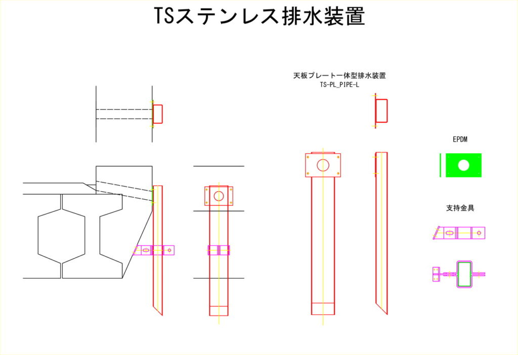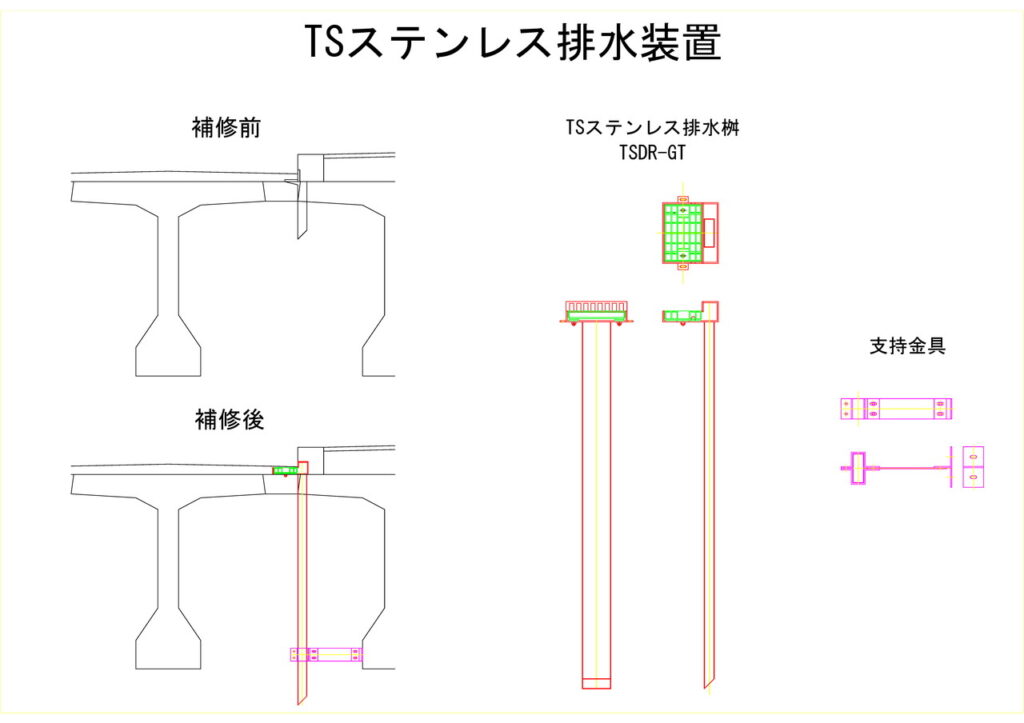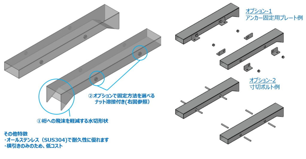 桁下面へ天板プレート一体型排水装置の設置イメージ