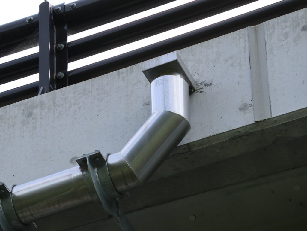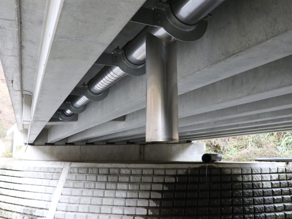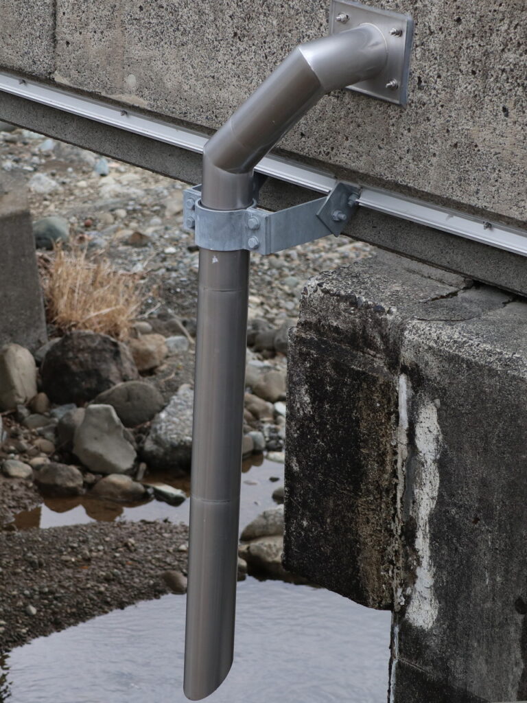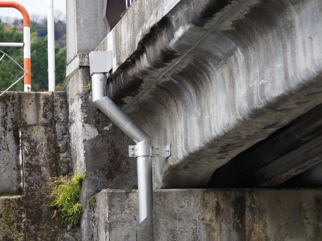 横引排水を桁下までの導水に用いた例、横引用丸管形状例