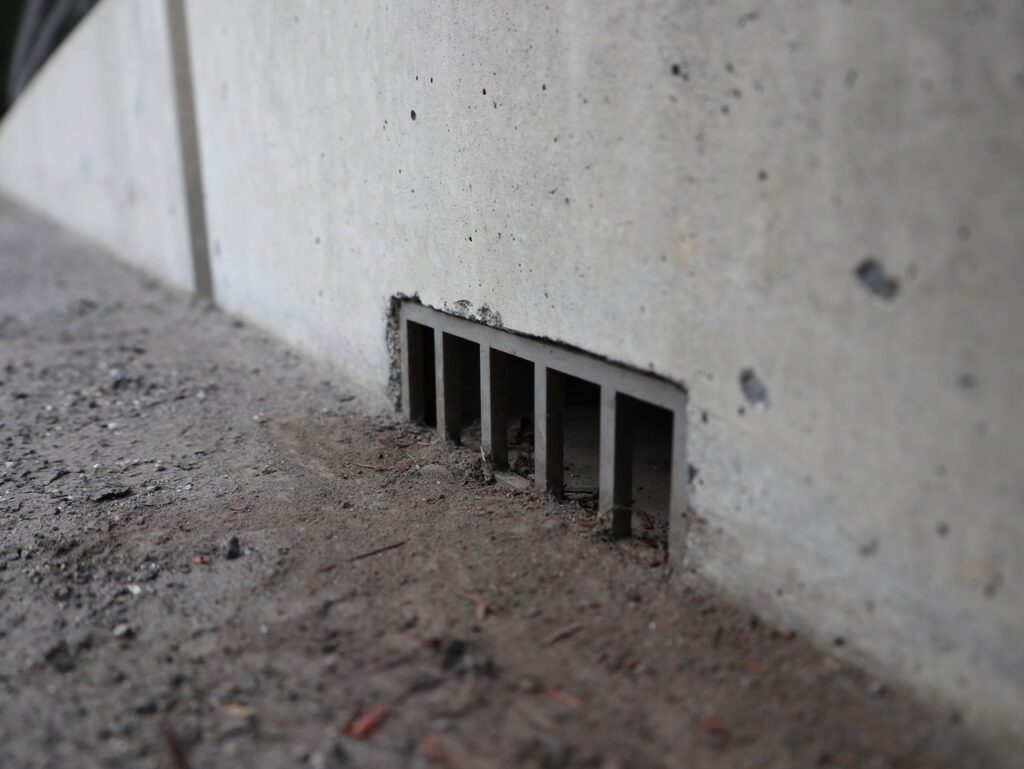 地覆横引(貫通)管一体の平面目皿のある現場