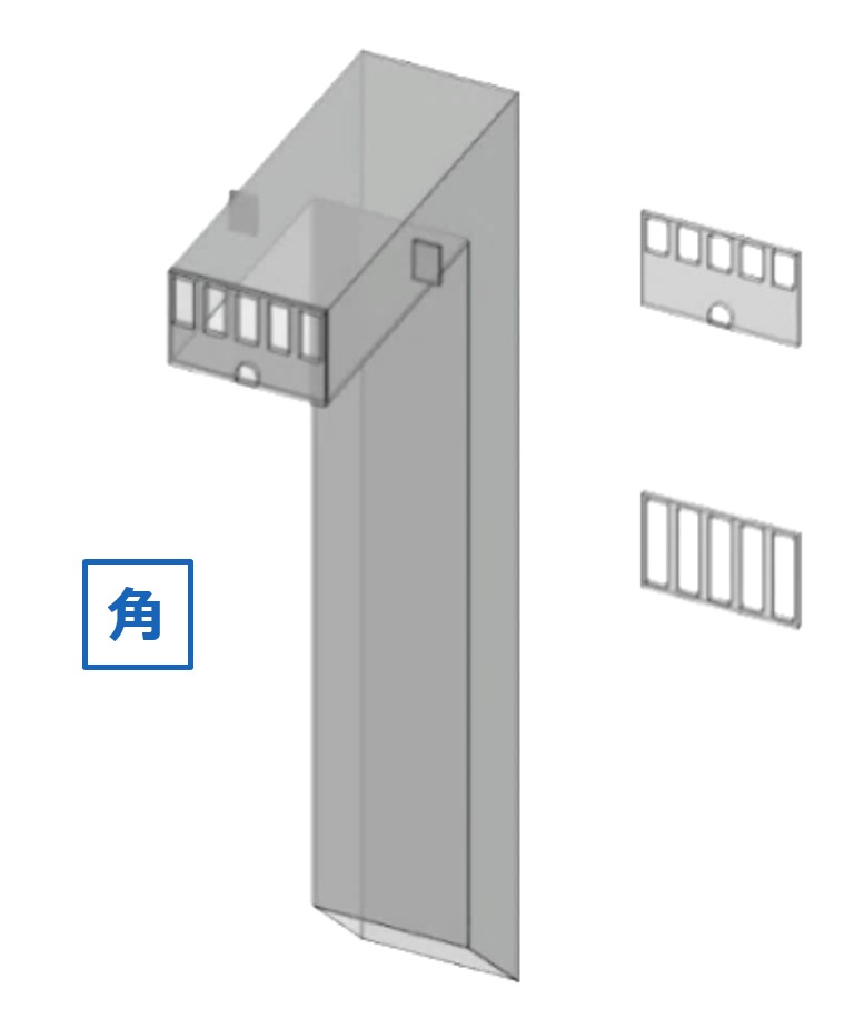 間詰部隙間へ挿し込むような形状の角管例