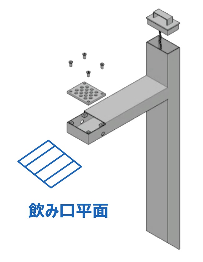 地覆横引で飲み口の目皿が可動(清掃用)するもの
