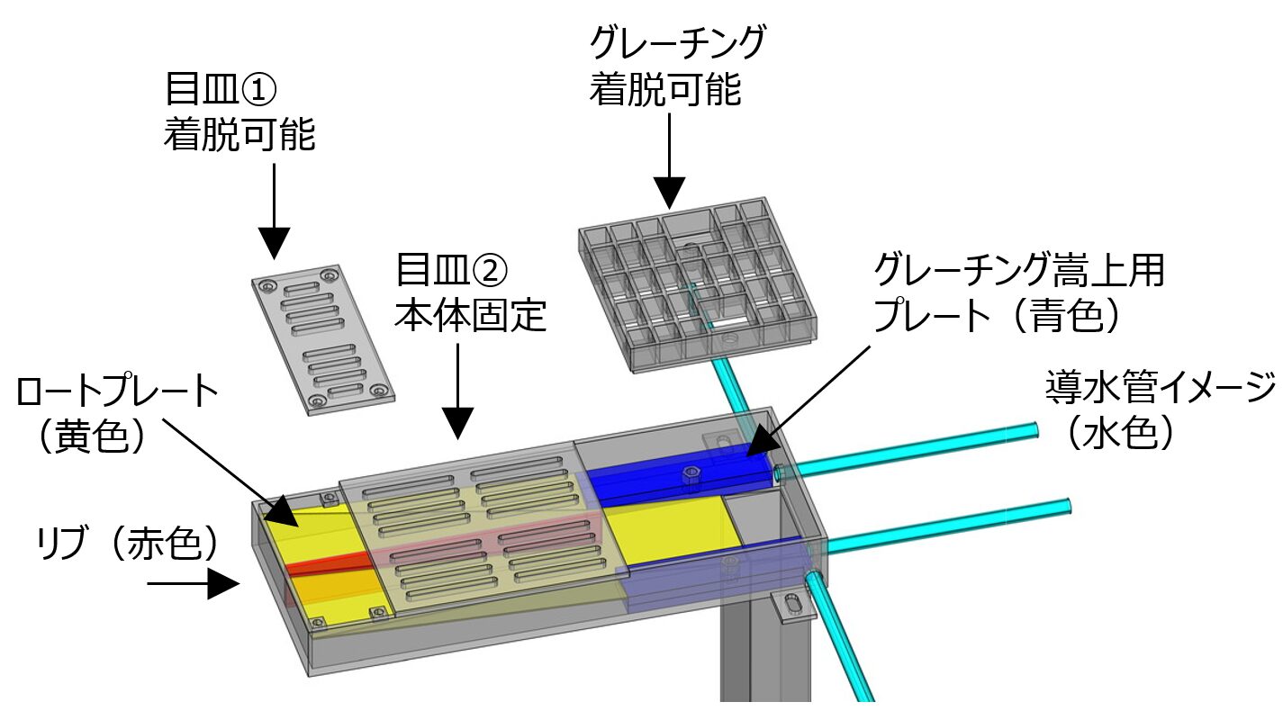 TSDR-YD301の可動式目皿のサイズを大きくした仕様になります。現場状況に応じ仕様変更、組み合わせ可能です