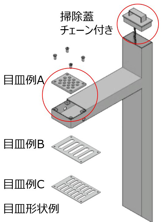 目皿(2枚使用)仕様 排水桝(キャップ)