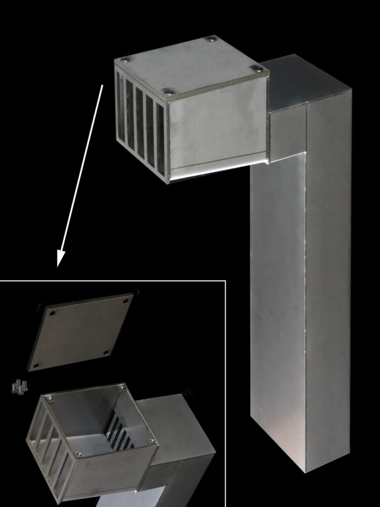 角管天端に目皿一体とした形状での既設管内への挿し込み例