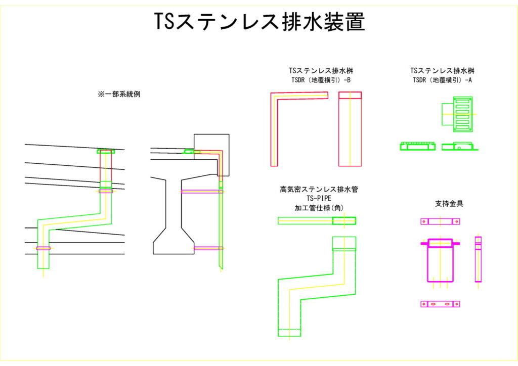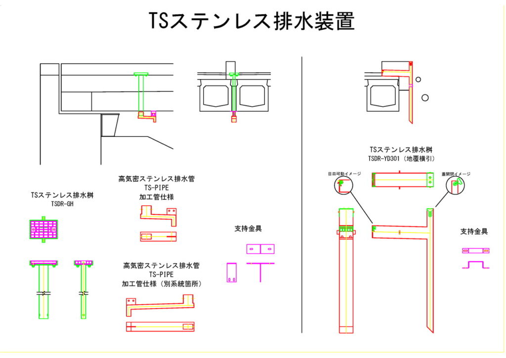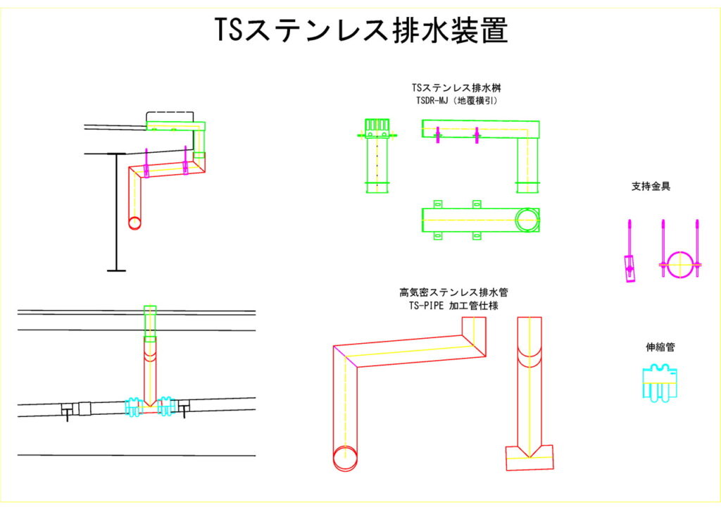 TSステンレス排水装置では現場毎の課題に対し様々なご提案を行っています。