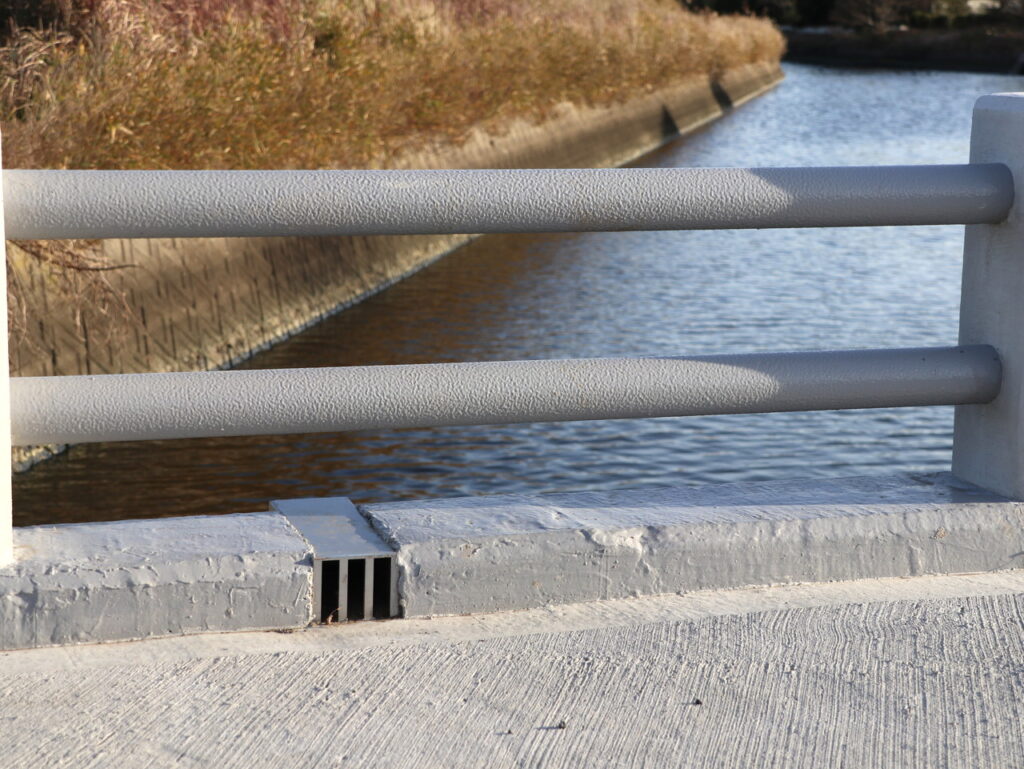 横引きのみのシンプルな仕様 / 桁への飛沫を考慮した流末形状