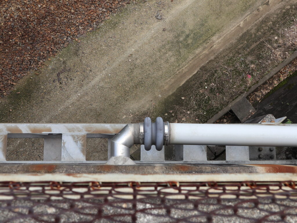 ※排水管の上に張り出しや桁が無い為、豪雪地域では極端な積雪により排水管や支持金具の破損が考えられますのでご検討の際はご注意ください