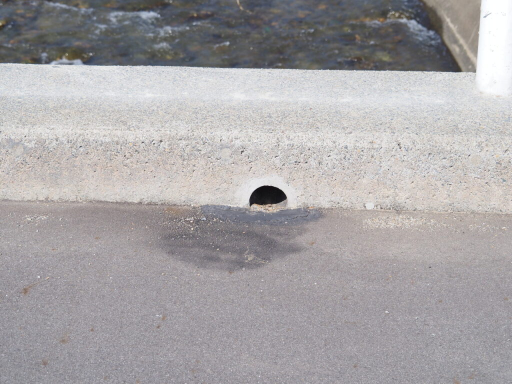 ①-B5-10. 地覆横引(貫通)管で平面目皿 写真