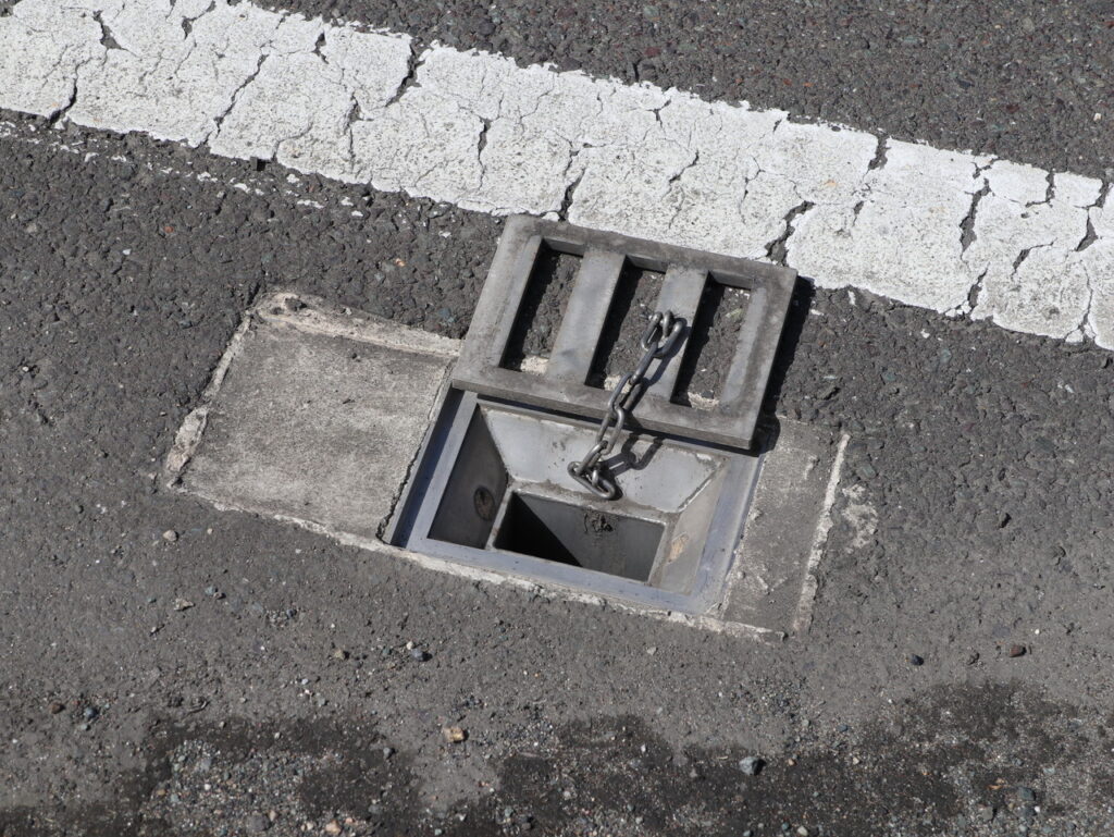 地覆横引で鉛直部の上端等に清掃用の蓋がある、もしくは孔開き(パイプ)のもの
