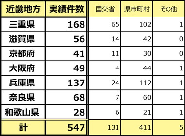 ※都道府県の実績表は、その都道府県内に納品された発注者(国、県、市町村等)すべてを含みます。