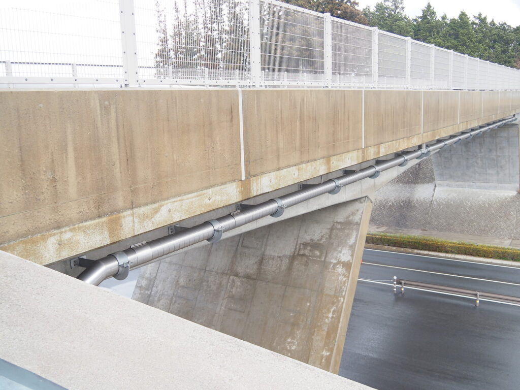 低コストな「TS-PIPE スパイラル直管」、加工自由度の高い「TS-PIPE 加工管」の組み合わせから成る、優れた特徴を持つ橋梁添架排水管です。