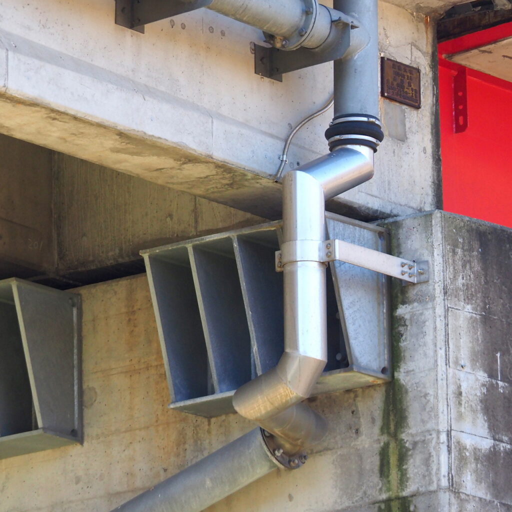低コストな「TS-PIPE スパイラル直管」と加工自由度の高い「TS-PIPE 加工管」の組み合わせにより、低コスト化とT字型管やY字型管といった複雑な形状にも対応可能。特に補修工事では現場の状況に合わせた特殊形状が必要となることが多く、図面作成から製作まで一貫したサポート体制を整備。既設構造物への取り付けや狭小空間での施工など、様々な現場条件に柔軟に対応できます。