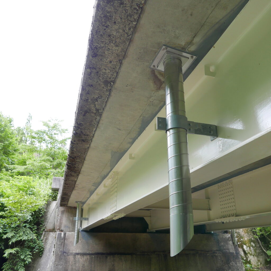 耐寒性、耐候性、耐蝕性に優れるオーステナイト系ステンレスSUS304材を使用。塩害地域や寒冷地、紫外線の影響を受けやすい環境でも劣化しにくく、従来の鋼管やプラスチック管と比較して大幅に長寿命化を実現しました。めっき処理も不要なため、メンテナンスコストの削減にも貢献。橋梁という過酷な環境下でも安定した性能を発揮し、インフラの長期的な維持管理に最適です。