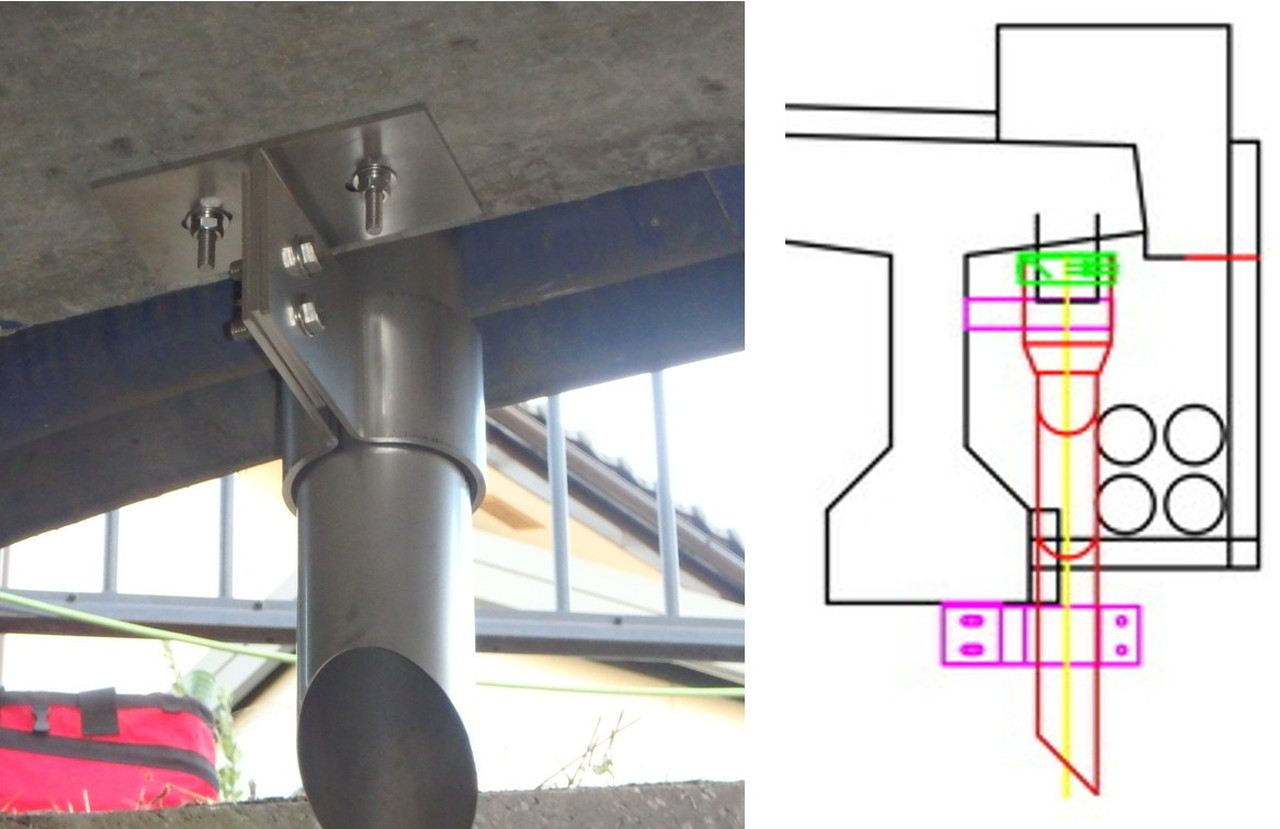 橋梁用TSステンレス排水装置のトーカイスパイラルです。1基、1本から提案・作図・製作を行っております。