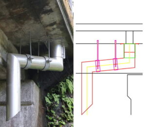 橋梁用TSステンレス排水装置のトーカイスパイラルです。1基、1本から提案・作図・製作を行っております。