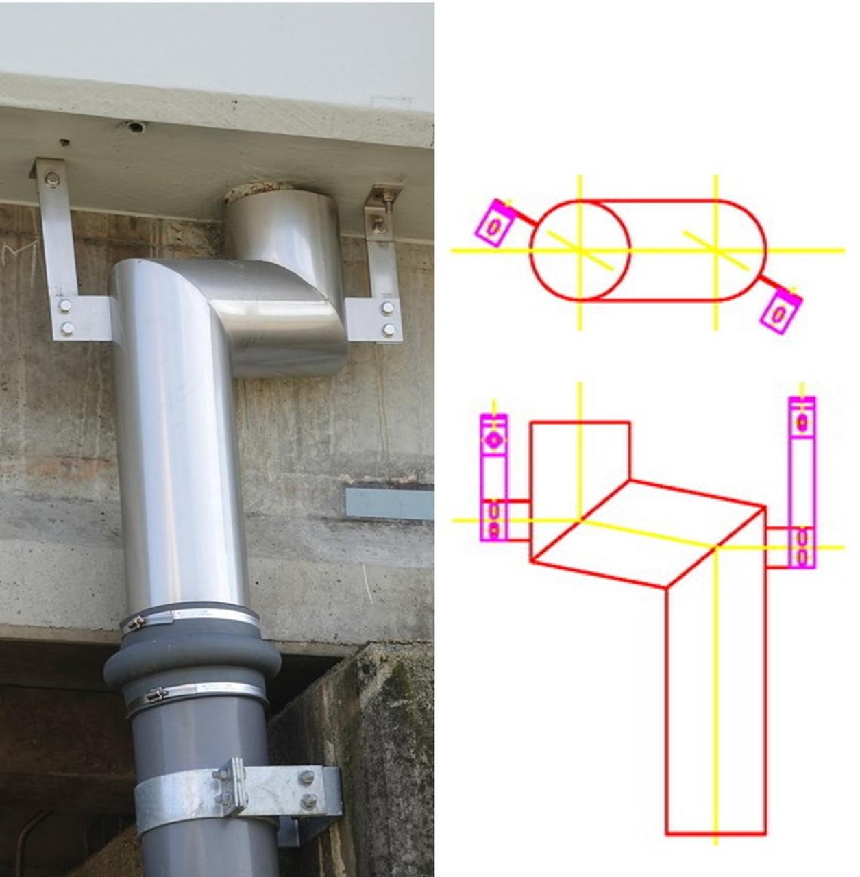 橋梁用TSステンレス排水装置のトーカイスパイラルです。1基、1本から提案・作図・製作を行っております。