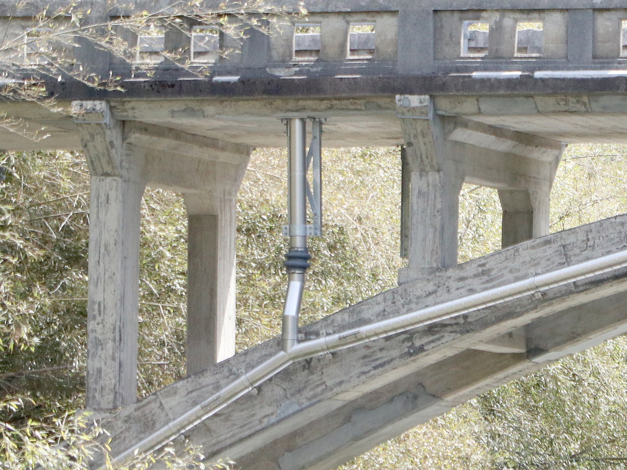 橋梁用TSステンレス排水装置のトーカイスパイラルです。1基、1本から提案・作図・製作を行っております。