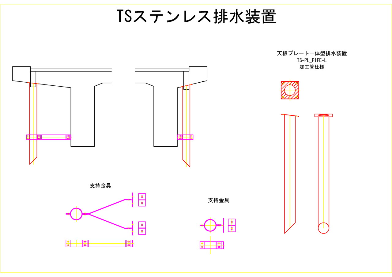 橋梁用TSステンレス排水装置のトーカイスパイラルです。1基、1本から提案・作図・製作を行っております。